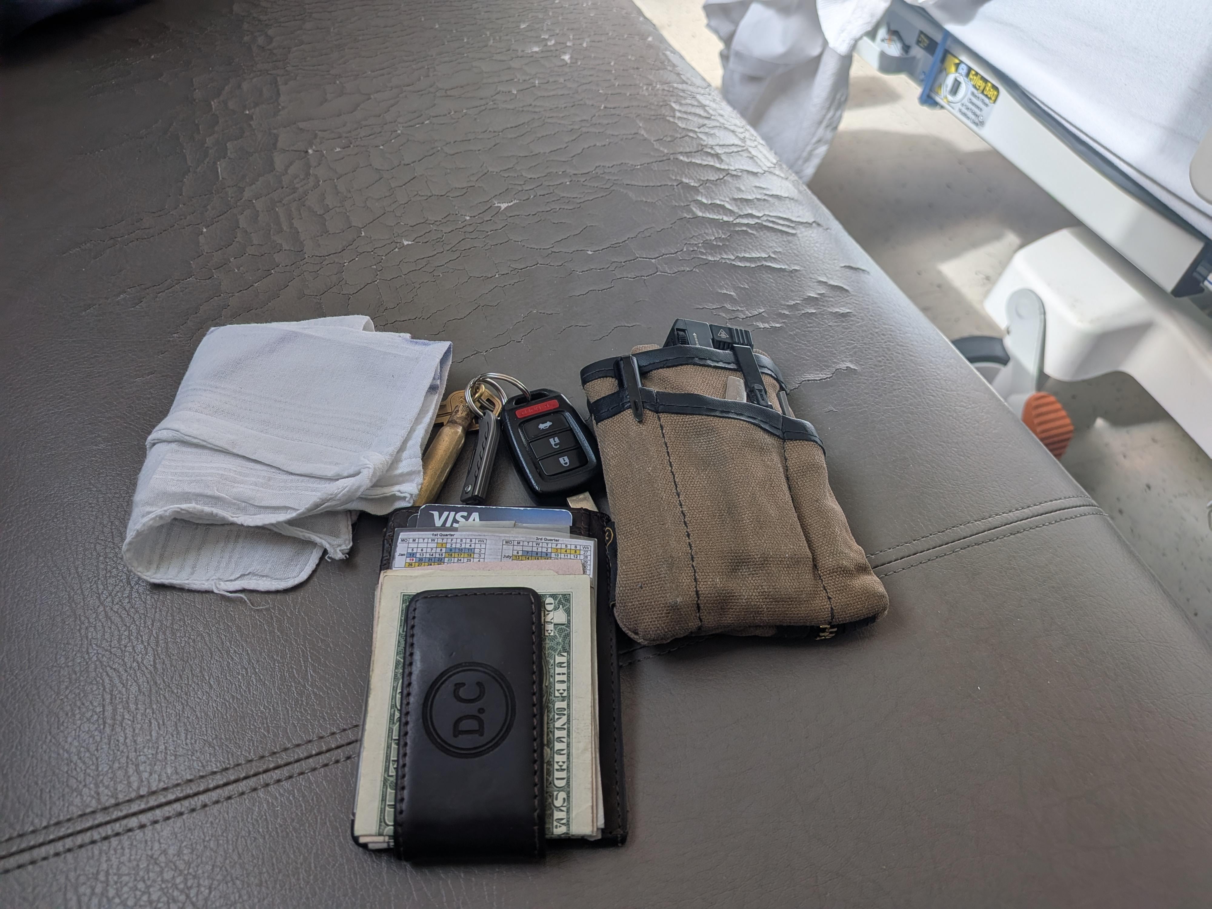 I've seen some folks mention an interest in a for real pocket dump. Not a staged photo of brand new stuff. (I personally like the pocket porn.) So here's my stuff that gets used on the regular and is mostly sentimental. It'll take me a few posts to break it down if there's interest in what a regular ole guy carries in his pockets. To comply I'll keep the list short and sweet. I'll do better in the follow up posts if y'all are interested. Cheap hank, wallet, keys, pocket pouch.