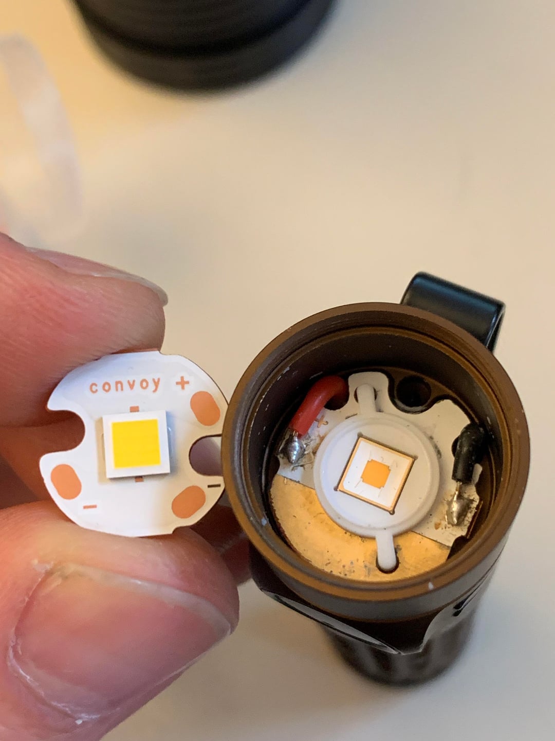 The tint is very nice, slightly rosy, and the flashlight is now noticeably brighter than with the SFT40 3000K 95CRI. Now it’s my almost perfect EDC light!