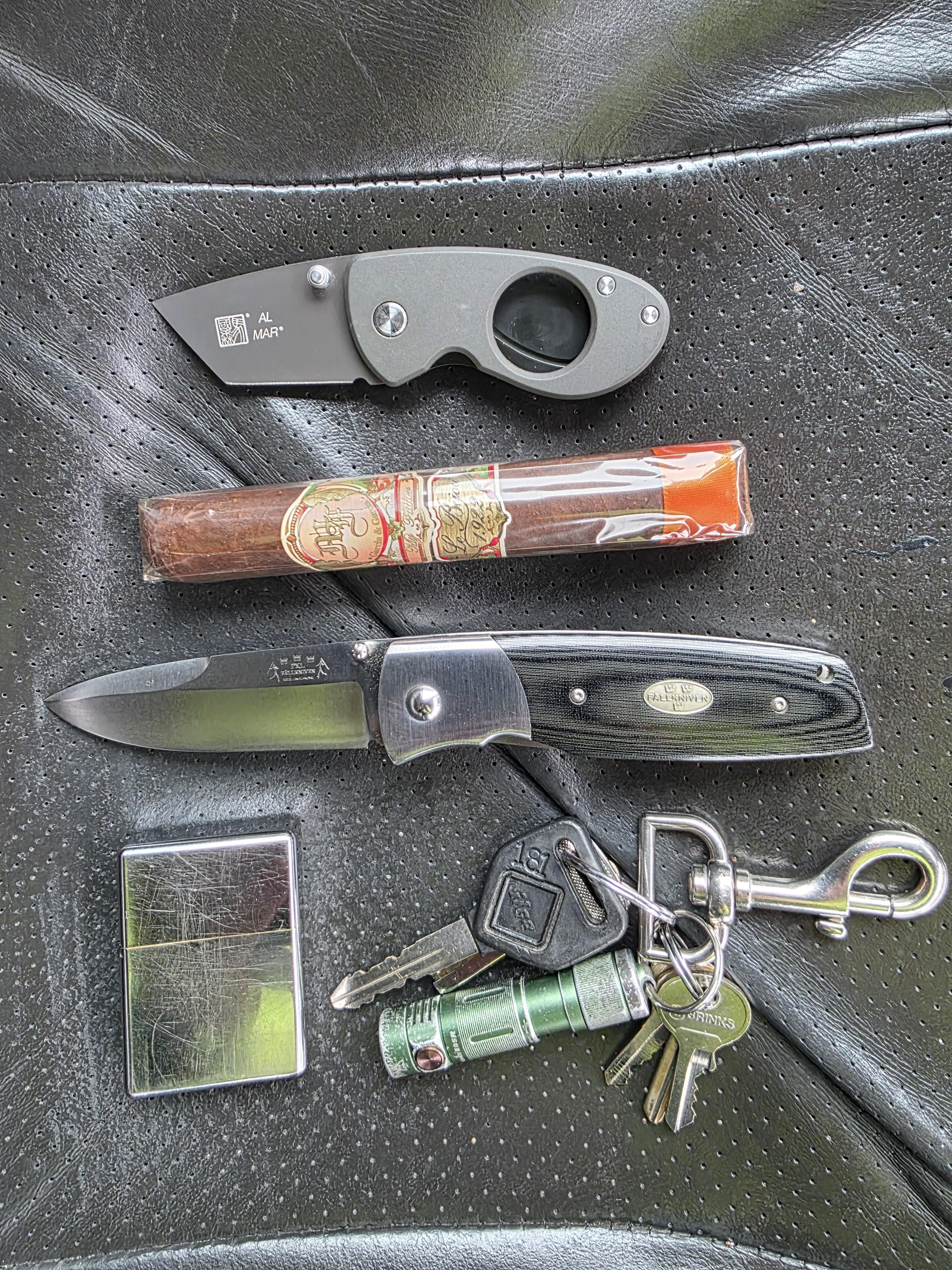 In EDC 58/M Truck Driver – parked for the day February 15, 2026 AL MAR Knives Havana Clipper My Father Robusto Fallkniven PXLbm Zorro 912 lighter w/ butane insert Keychain w/ Fenix E05R by BlastTyrantKM EDC Prev Post Does anyone know what knife this is February 15, 2026 Next Post LHP531 4K swap Olight WM3 February 15, 2026 Related Posts My first EDC post April 24, 2026 Guess my job April 24, 2026 Don’t sleep on the Ryobi doorknob installation driver April 24, 2026 2 Comments AutoModerator 2 months ago Thank you for posting to r/EDC! Include a detailed item list (make/model) within **1 hour** of submission. Lists can go in the title, a comment, or the image. Posts without lists will be removed. If you have already provided a list, not further action is needed, thanks! [Rules](https://www.reddit.com/r/EDC/wiki/rules) | [FAQ](https://www.reddit.com/r/EDC/wiki/faq) *I am a bot, and this action was performed automatically. Please [contact the moderators of this subreddit](/message/compose/?to=/r/EDC) if you have any questions or concerns.* poop_boss 2 months ago My Fathers are amazing Write A CommentYou must be logged in to post a comment.