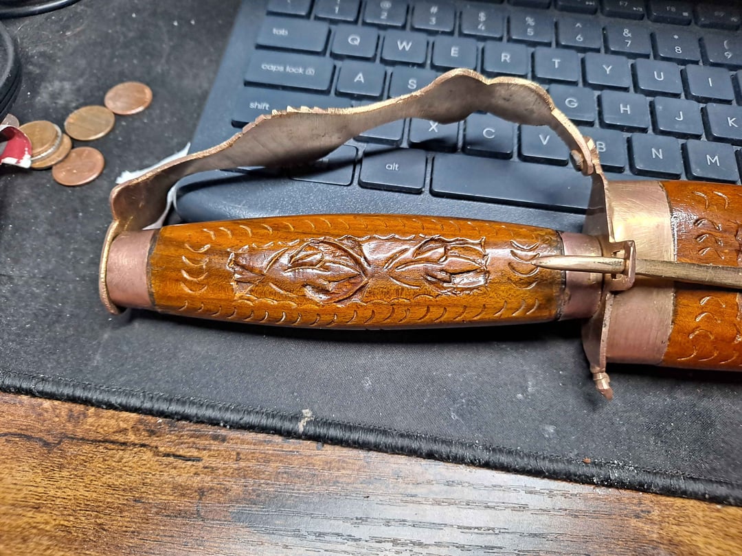 Hello! I've been meaning to figure out what type of knife this is. I've tried google images couldn't find anything like it, no genres of knifes like it either with its build. I can send more images of it anytime from more angles than just the few shown above. Any amount of help is very appreciated by me as for where the friend got it from, it was brought from a yard sale and they knew I would like it. Thank you in advance