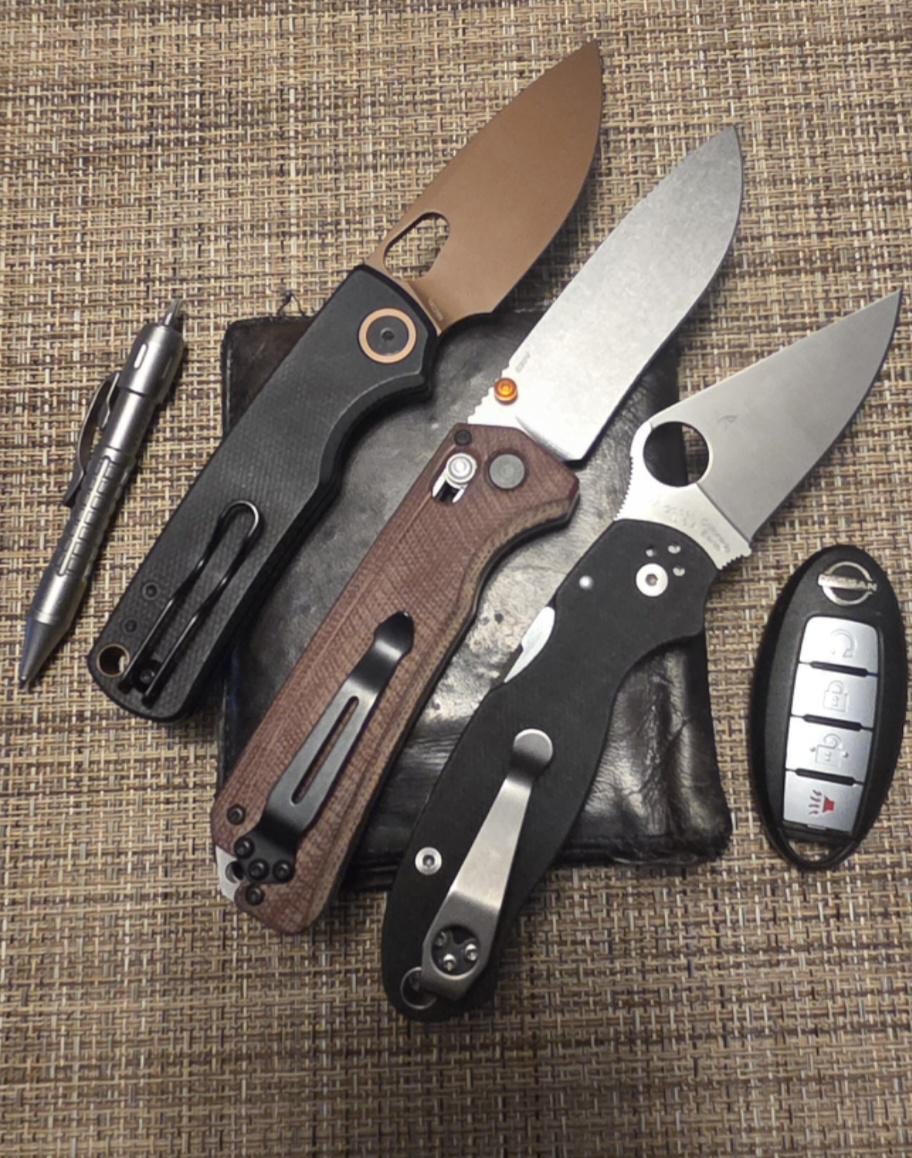 Whatcha got! Monday micarta for me. Vosteed Porcupine, Spyderco Para 3 and Benchmade Grizzly Ridge