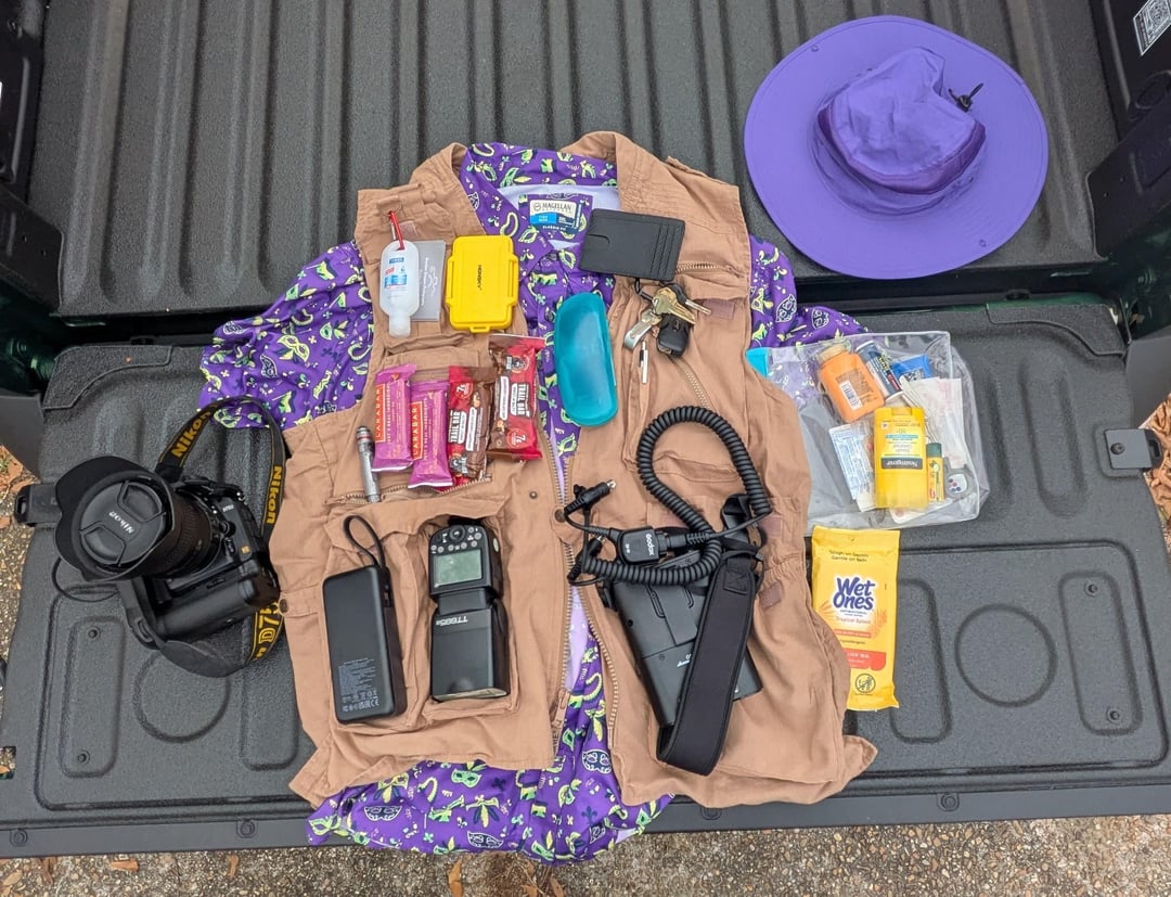 Not Quite Everyday Carry, but this is what I will carry to photograph all day Mardi Gras in the French Quarter.