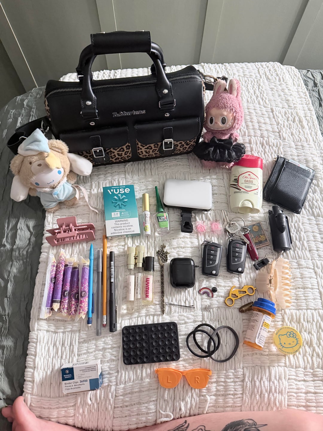 This mix of random essentials and little treasures tells me you’re practical and sentimental at the same time. Love seeing bags that aren’t just pretty but actually useful as hell.
