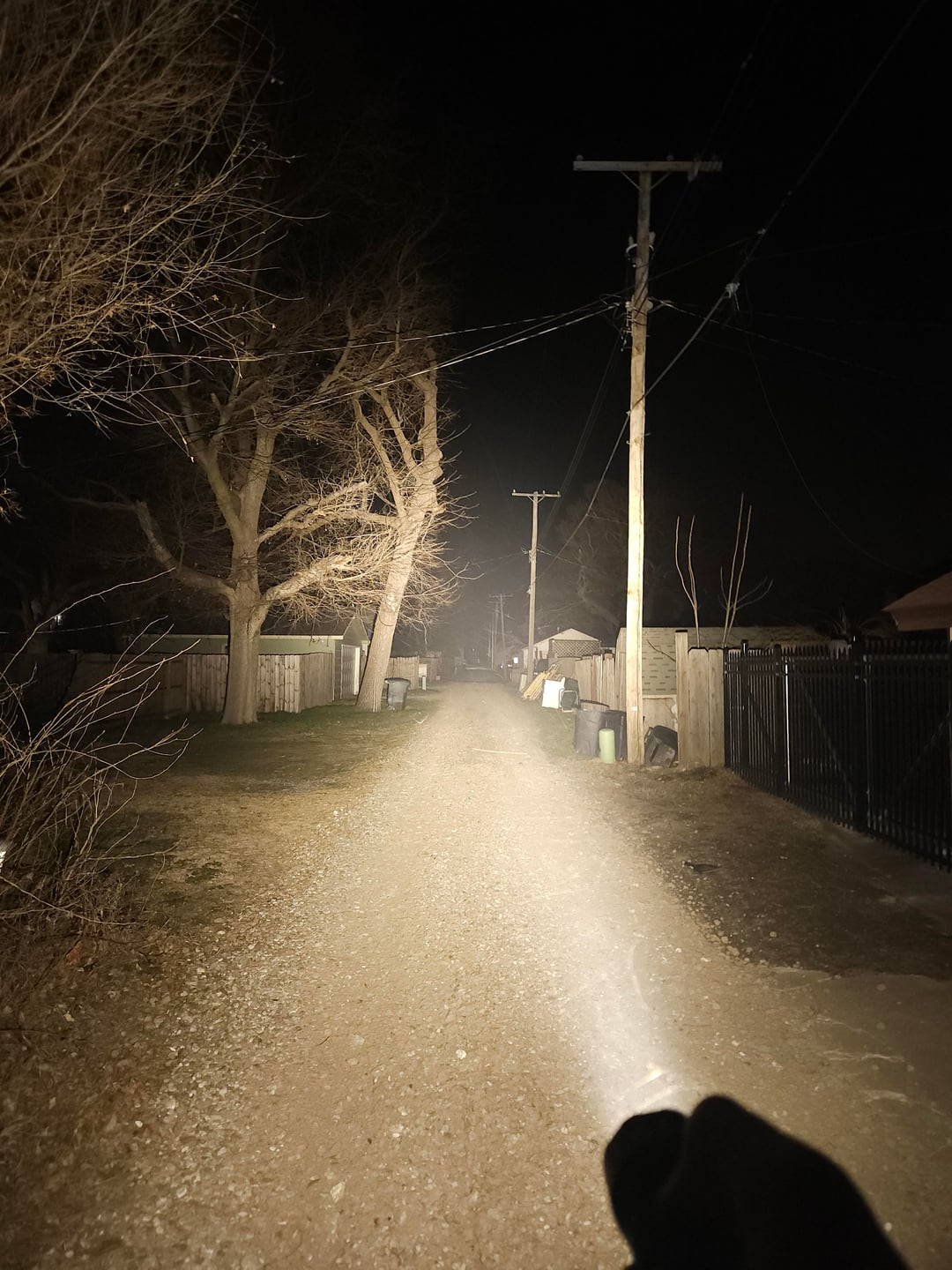 I wasn't sure how I would feel about the altered UI of the 3V 20A side switch driver, but it isn't bad. The smooth ramp is quicker and you aren't spending two years waiting for it to reach the top of the ramp. The moonlight is a surprisingly good level, it's pretty dim and not even remotely blinding, I imagine it would work great for those waking up in the middle of the night and needing to use the bathroom without annihilating sleep brain. The bottom of ramp however… I think it should be lower. I spent a couple hours outside getting my beamshots and when I was just walking from location to location, I legitimately never needed to ramp up, it's that usable outside, and a little much for indoors around the house. I like the better battery voltage check, it works similar to Anduril 2, so if you're at 3.8V, it'll blink three times, pause, then blink eight times. It doesn't do a third digit, but not being able to see whether I'm at 3.84V or 3.87V doesn't really bother me at all. I quite like the 2H for momentary turbo from on or off, it's actually fairly intuitive and works really well. I'm typically only using turbo for short bursts anyway, so holding the button the whole duration and then releasing the button to go back to ramp just… works.