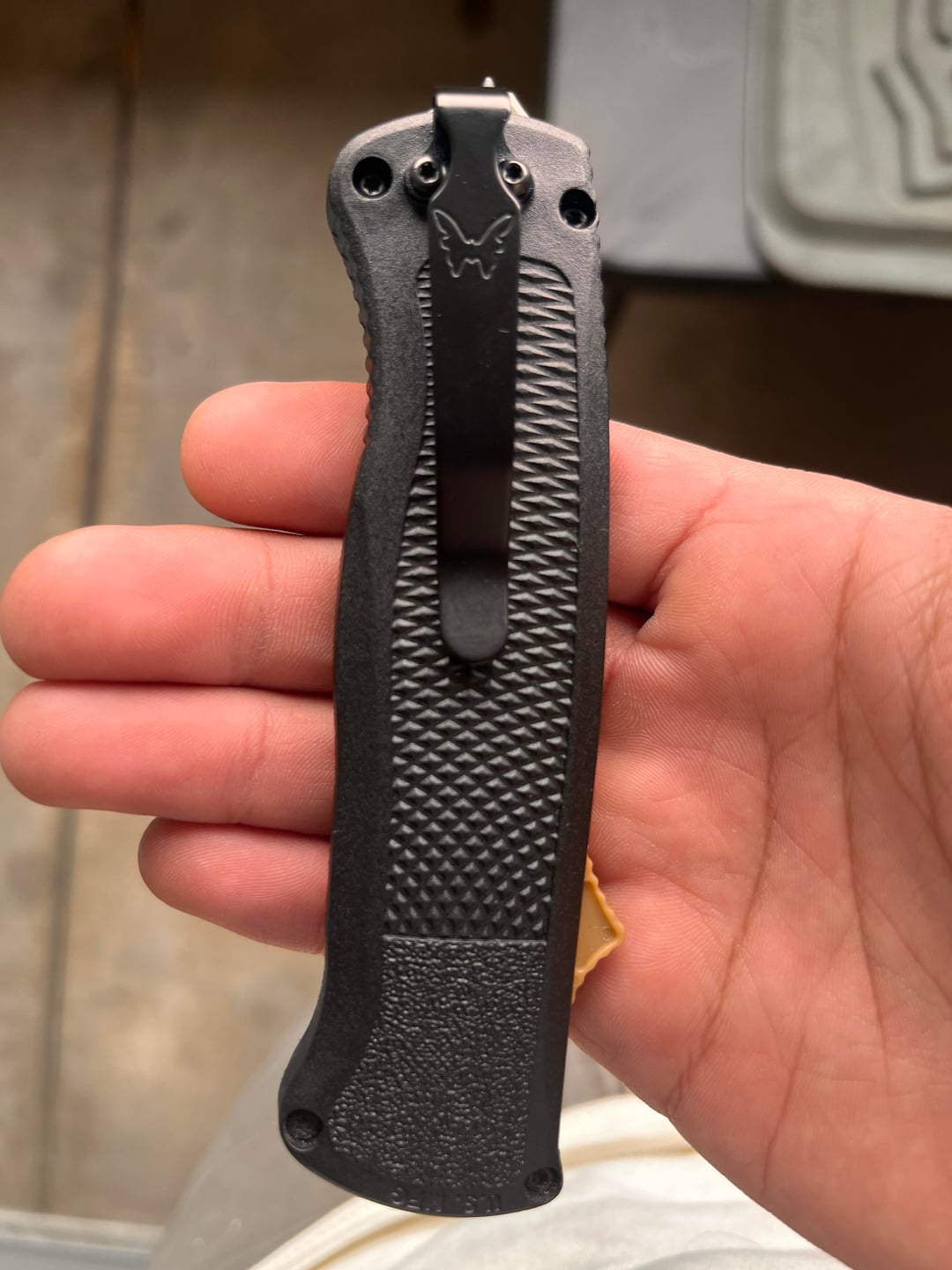 Bought this for $20 from a guy who said he found it at an estate sale. Is it real? Benchmade Shootout FDE Tanto