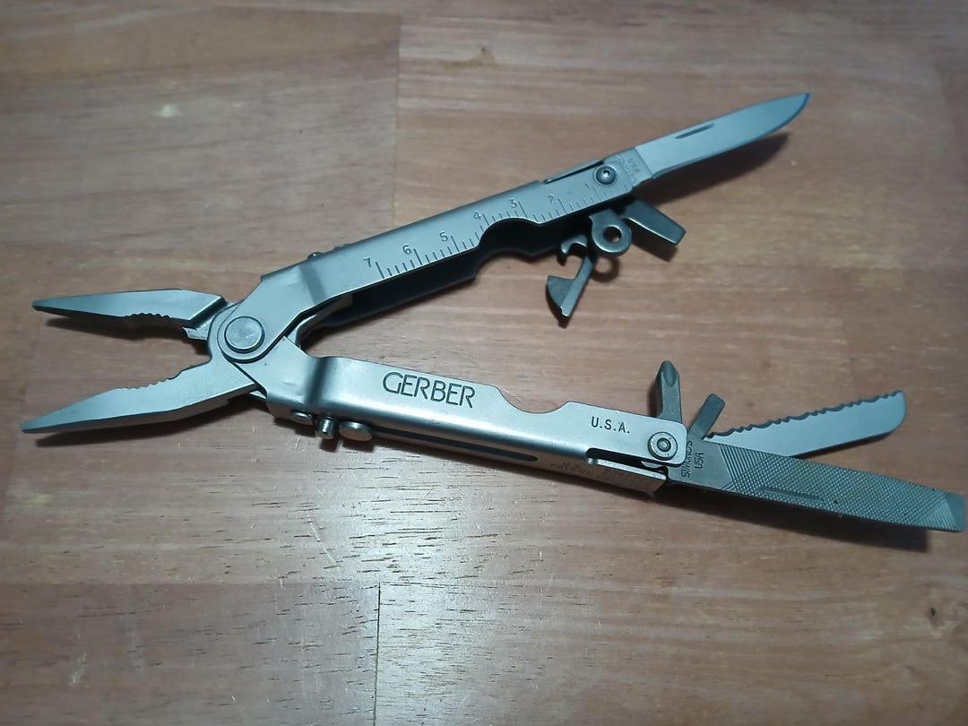 Years ago when I was very active on Multitool.org I used the name Mr. Pinchy to describe this, the first-generation Gerber multi plier. If you've ever used one you know this is justified. The name came from a Simpson's episode, it was the name of Homer's pet lobster. It stuck on the forum, and I saw it used earlier when I posted my Carolina version of this. I've always been a big Gerber fan, and was a Gerber mod on that site. My everyday tool is an MP400 Compact Sport carried in my bag. For years an MP600 Pro Scout hung from my belt. US made Gerbers have always been quality tools, and this one shown is solid.