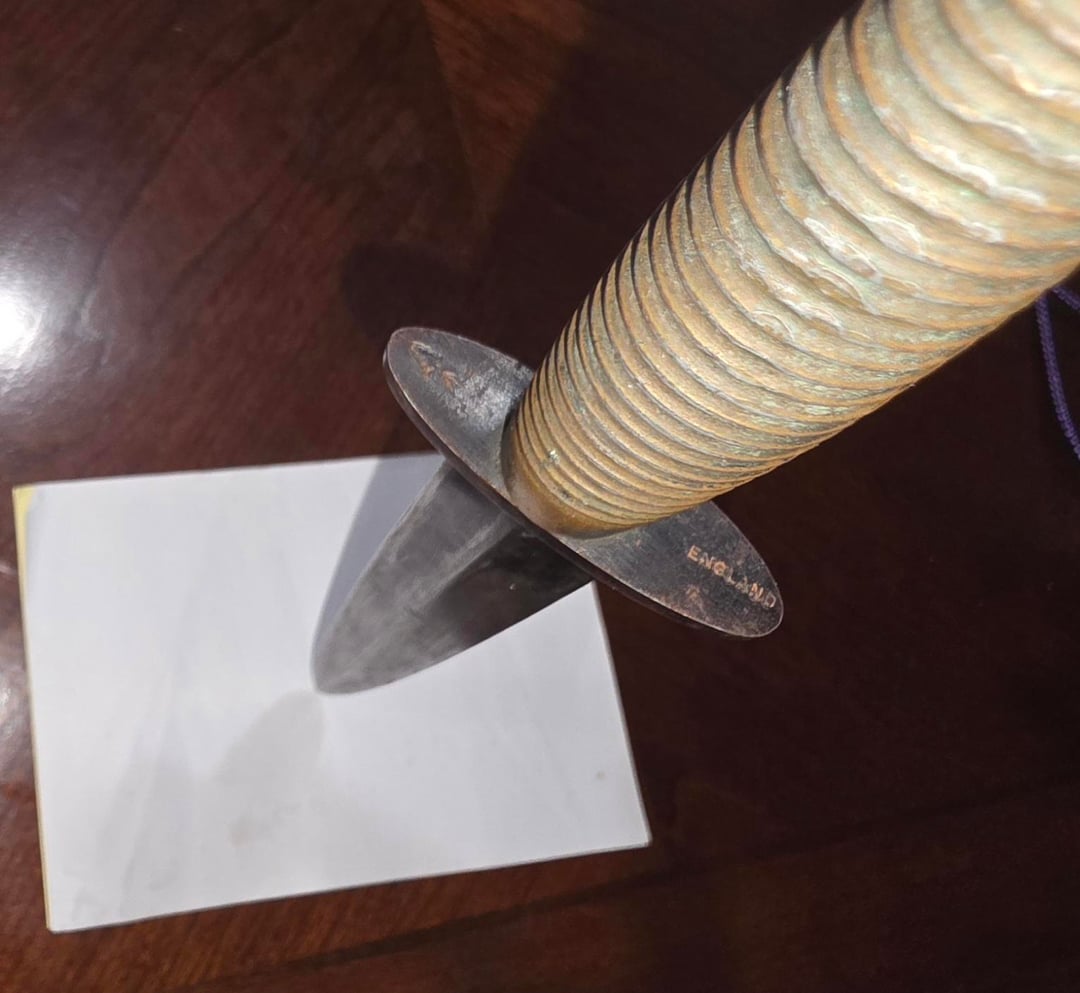 the broad arrow is the british military acceptance mark, and the ENGLAND stamp is said to have been applied to WWII-era knives, postwar, to be sold as surplus here in the US