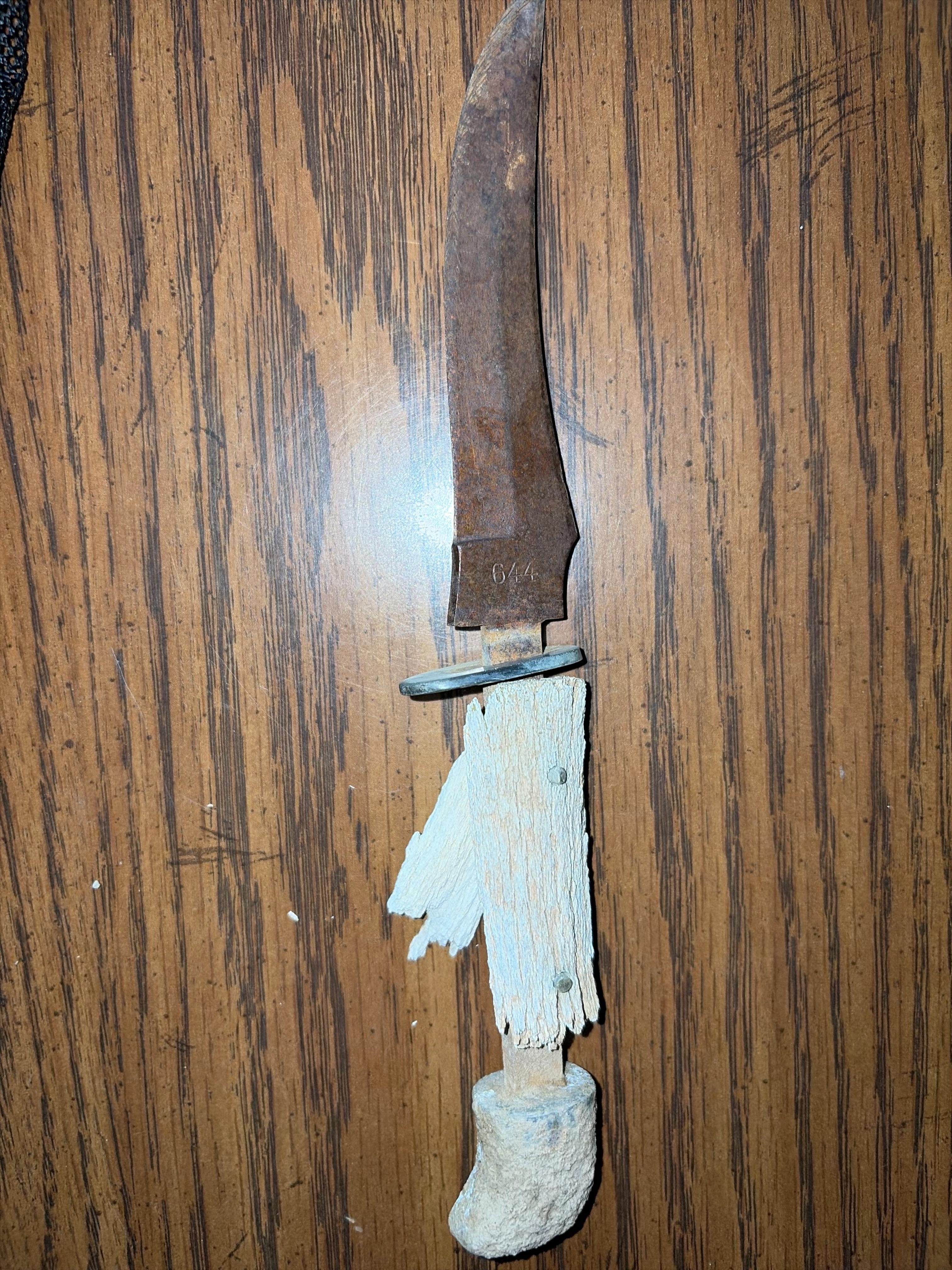 In KNIVES Old knife found in Wyoming hills February 18, 2026 Old knife found in Wyoming hills by Enough-Bunch6239 KnifeKnife ClubKnives Prev Post I just got home from work and my wife proceeds to pull this out and give it to me….. February 18, 2026 Next Post NKD BRK Forest scandi in magnacut with black linen micarta and a red spacer. February 18, 2026 Related Posts Today’s carry April 8, 2026 My first fixed blade April 8, 2026 Meet the Tenableknives Parr 🖤🤎 April 8, 2026 1 Comment Enough-Bunch6239 2 months ago Can anyone at all tell me what it isWrite A CommentYou must be logged in to post a comment.