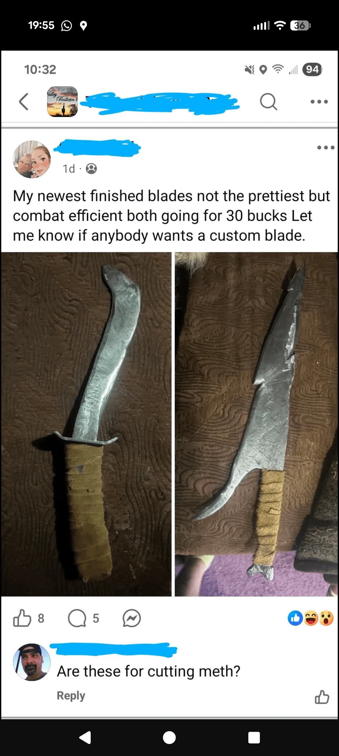 In KNIVES Found this gem of a listing February 19, 2026 Found this gem of a listingby -Dark0 KnifeKnives Prev Post Sporting a Micro in the Afternoon February 19, 2026 Next Post My lil Spydernox :) February 19, 2026 Related Posts Monday Carries ☑️ April 20, 2026 I lost my leatherman. First real knife. April 20, 2026 Cold steel El Lobo VG-1 April 20, 2026 1 Comment TheR4alVendetta 2 months ago It will keel. Unless it folds in half.Write A CommentYou must be logged in to post a comment.