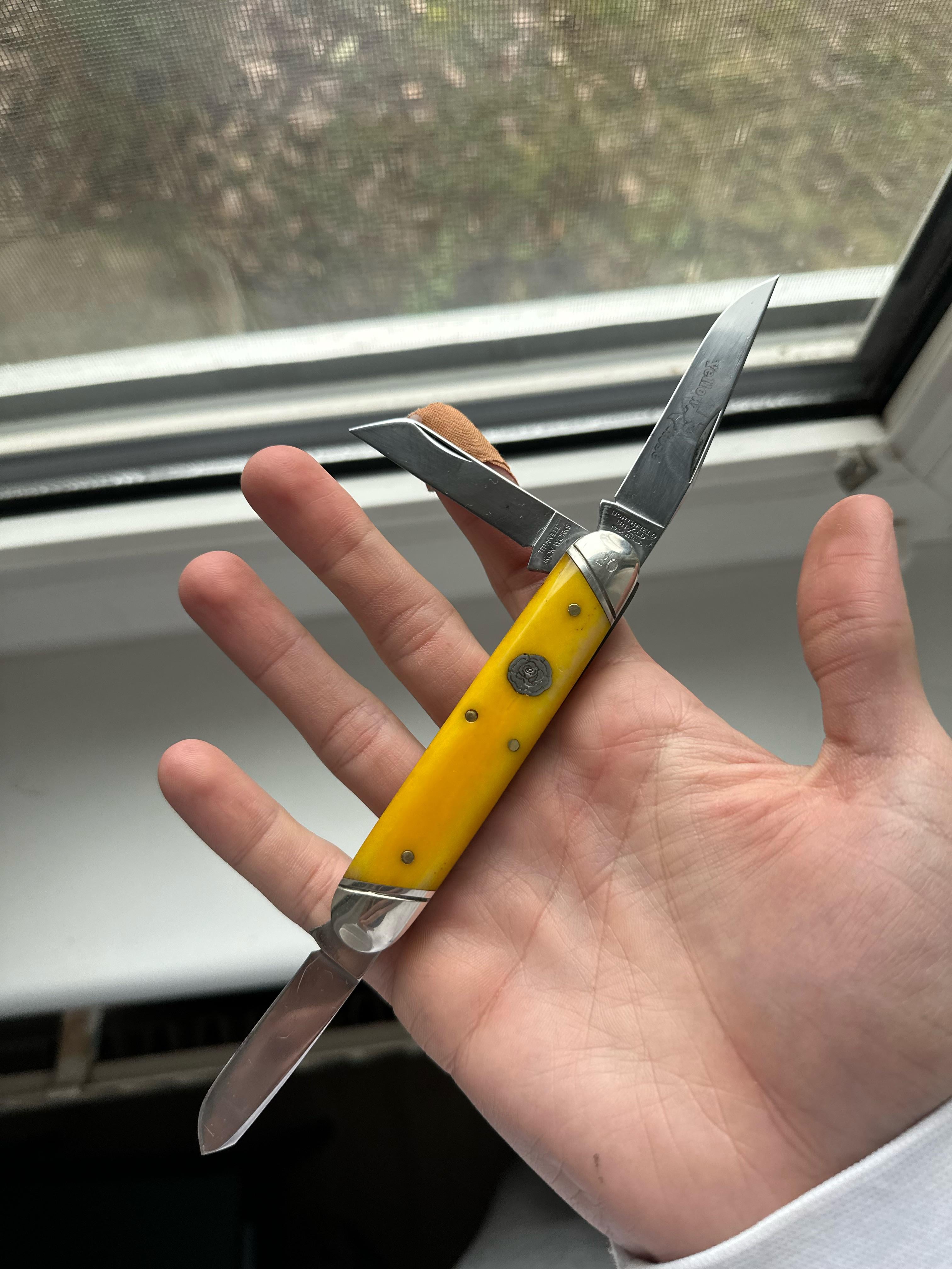 In KNIVES NKD GEC #53 February 19, 2026 Got my second GEC from the mail today. A beautiful Cigar Stockman with yellow bone and number 20 of only 25 made back in 2011. What do you have in you pockets today? by Greedy-Week-8733 KnifeKnives Prev Post Byrd Hawkbill February 19, 2026 Next Post Praxis + snow = 🔥 February 19, 2026 Related Posts Demko AD20S V2 Clip Point w/ RockScale Design scales February 20, 2026 My USA Carry February 20, 2026 How could I fix my knife February 20, 2026Write A CommentYou must be logged in to post a comment.