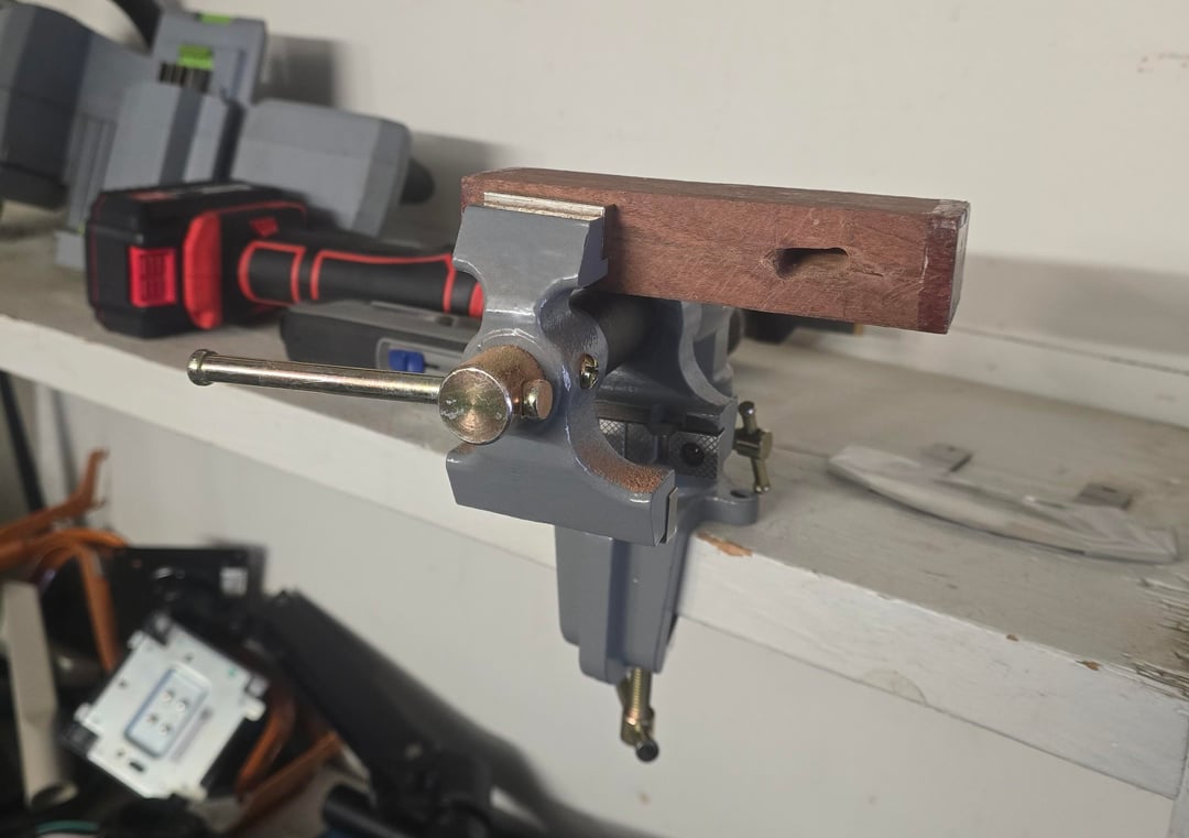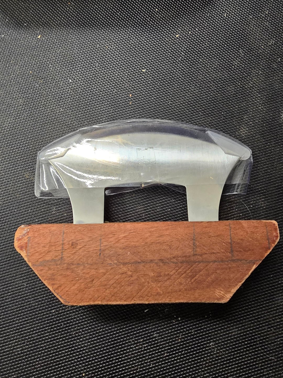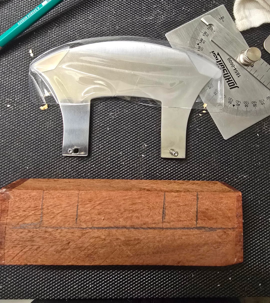 I bought the blade kit & wood (don't remember the species, unfortunately) at Woodcraft. It was the first time I used an oscillating multitool cutter and epoxy. I made a lot of educational mistakes, but I neither lost limbs nor glued myself to anything in the process. The wood smells amazing, like a calming incense, especially when it smokes and nearly starts on fire from oscillating friction.