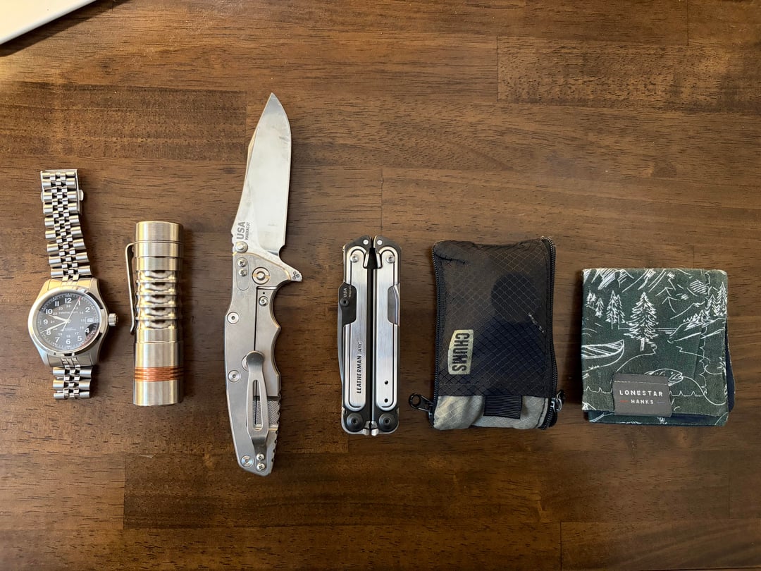 In EDC Most days carry February 21, 2026 My most common carry combo: – Hamilton Khaki Field Auto – Prometheus Delta – Hinderer Eklipse Skinny Slicer – Leatherman Arc – Chums wallet – Lonestar hanky by ObjectiveAssistance8 EDC Prev Post AWT Archon Series Benchmade griptillian scales February 21, 2026 Next Post Pinkyโs Out February 21, 2026 Related Posts Carry this today ๐๐ผ April 24, 2026 The perfect carry (for me) April 24, 2026 got a new bag, refreshed some items April 24, 2026 1 Comment AutoModerator 2 months ago Thank you for posting to r/EDC! Include a detailed item list (make/model) within **1 hour** of submission. Lists can go in the title, a comment, or the image. Posts without lists will be removed. If you have already provided a list, not further action is needed, thanks! [Rules](https://www.reddit.com/r/EDC/wiki/rules) | [FAQ](https://www.reddit.com/r/EDC/wiki/faq) *I am a bot, and this action was performed automatically. Please [contact the moderators of this subreddit](/message/compose/?to=/r/EDC) if you have any questions or concerns.* Write A CommentYou must be logged in to post a comment.