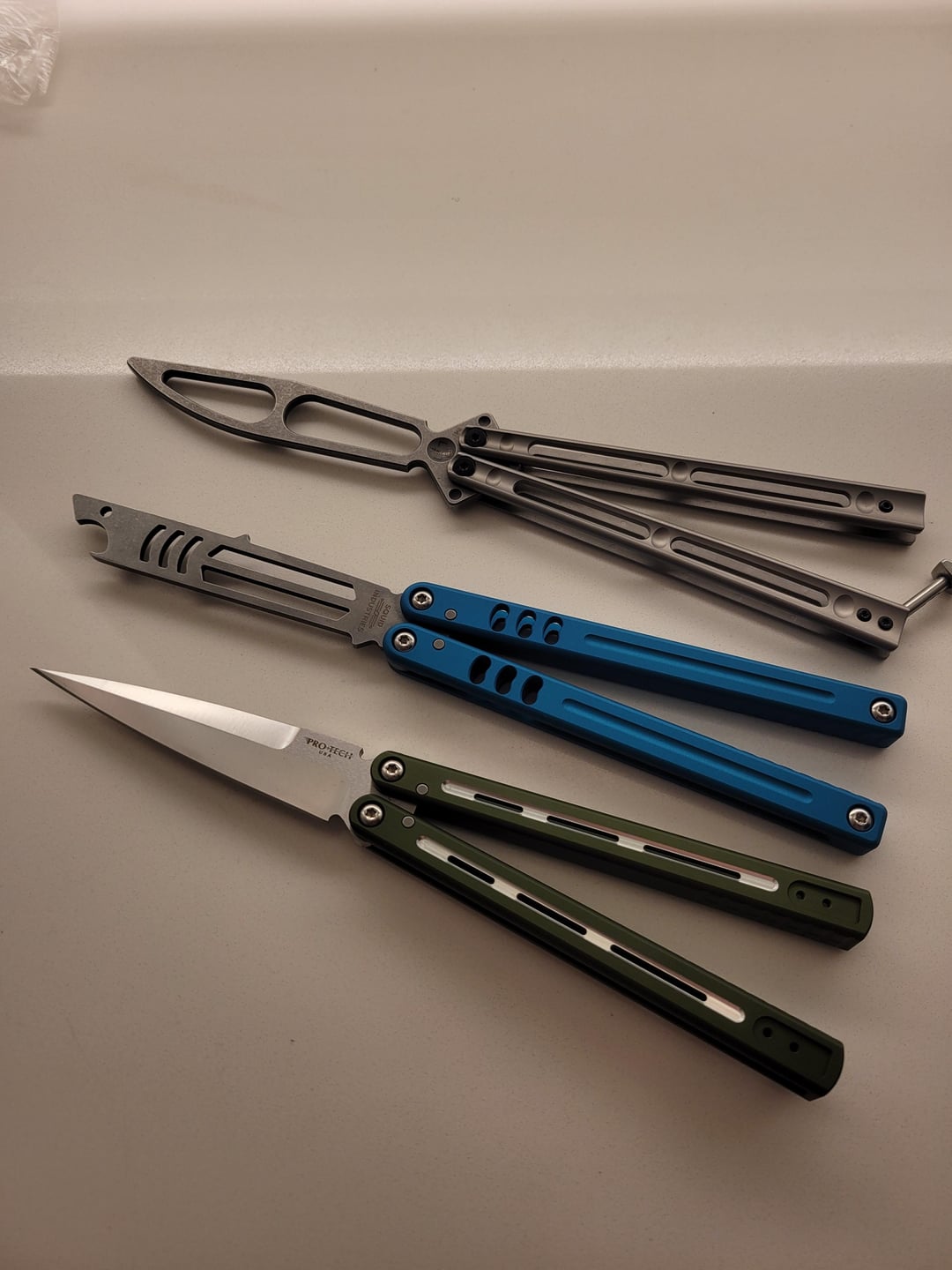 GoIdfazbeat 2 months ago Protech/Squidindustries Flyfather Squid industries Mako Boker Papillion trainer +next slide includes Microtech Plague Outbreak gen 3 trodon otf Protech Godfather Tuxedo Reate Exo-U Bronze