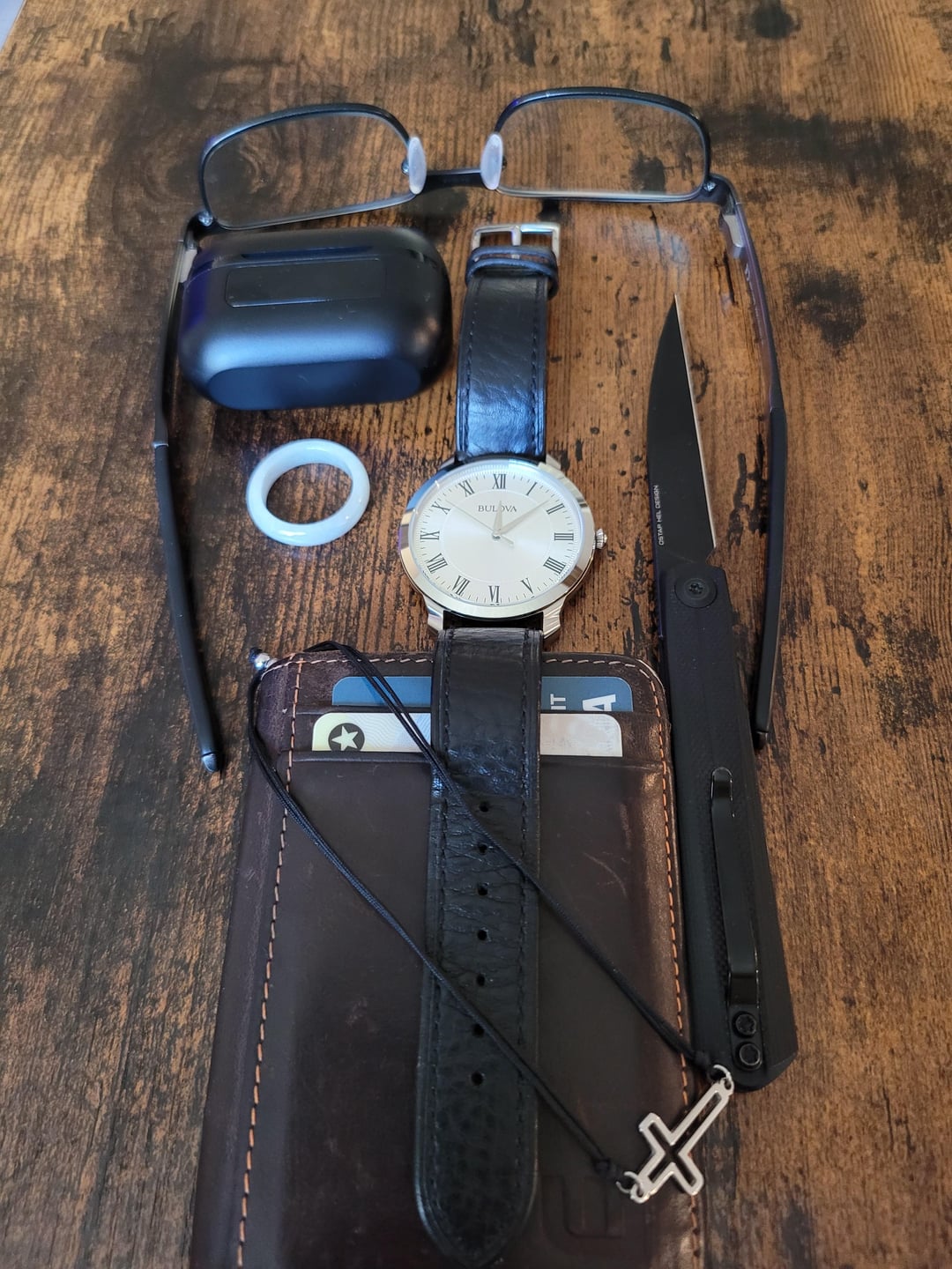 In EDC Bulova dress up on a Saturday and my EDC February 21, 2026 Bulova dress up on a Saturday and my EDCby davect01 EDC Prev Post what does my bag say about me? February 21, 2026 Next Post Saturday pocket check February 21, 2026 Related Posts DECENT DAISO EDC CONTAINER? February 21, 2026 Coffee Carry February 21, 2026 Saturday afternoon errands EDC February 21, 2026 2 Comments AutoModerator 4 hours ago Thank you for posting to r/EDC! Include a detailed item list (make/model) within **1 hour** of submission. Lists can go in the title, a comment, or the image. Posts without lists will be removed. If you have already provided a list, not further action is needed, thanks | [FAQ](https://www.reddit.com/r/EDC/wiki/faq)*I am a bot, and this action was performed automatically. Please [contact the moderators of this subreddit](/message/compose/?to=/r/EDC) if you have any questions or concerns.* davect01 4 hours ago Bulova Dress WatchWalleteras walletCivivi knifeTozo headphonesOakley glassesWhite Jade RingCross braceletWrite A CommentYou must be logged in to post a comment.