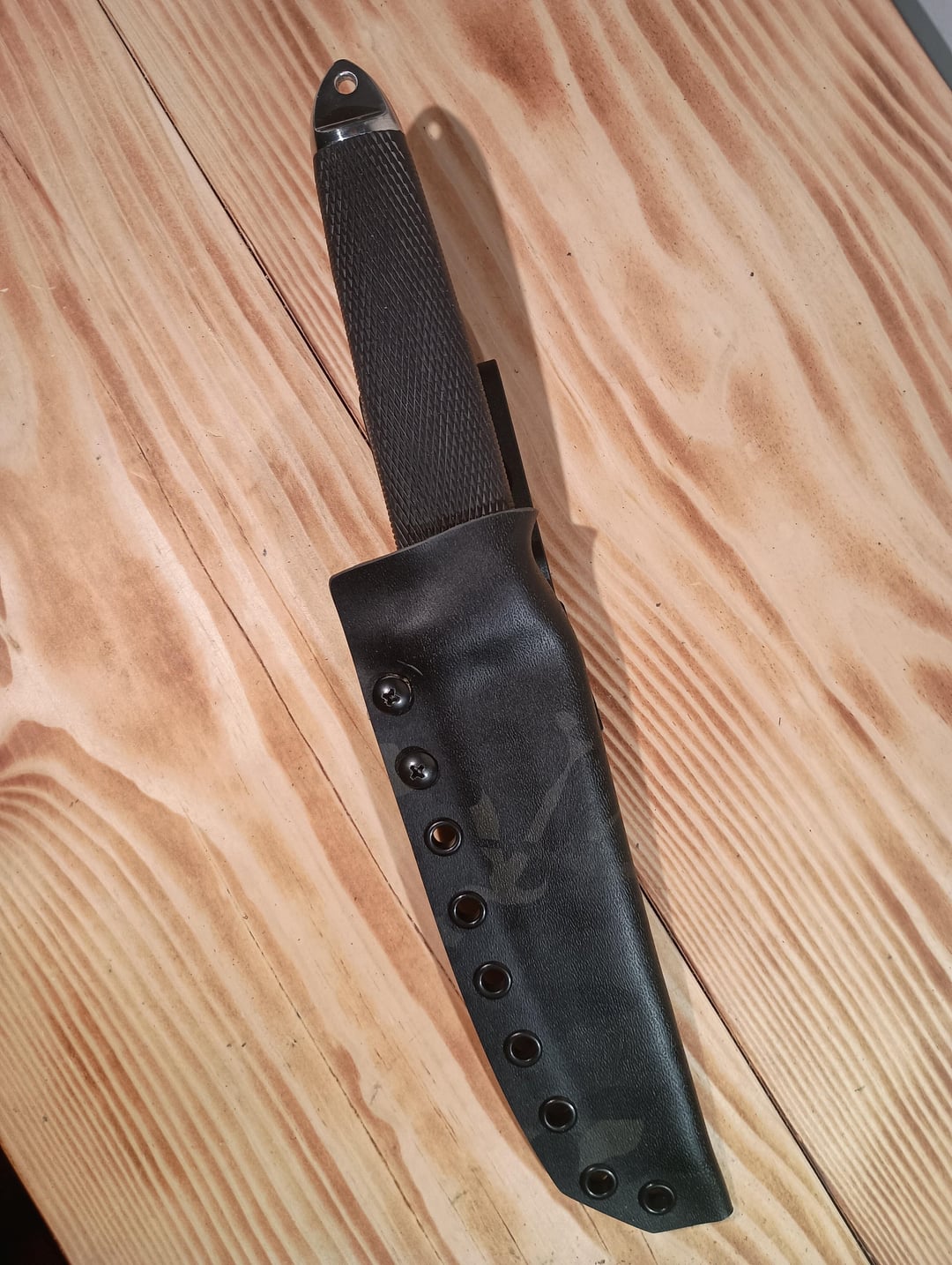 My DIY sheaths are getting better. I'm finding them, aesthetically, nearly as good as the ones I've purchased from custom kydex makers, while being functionally superior. The retention on this one is superb; in fact, I had to loosen it up from it's initial state. Zero wiggle or rattle.