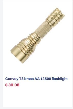 In Flashlight Brass T8 Available!! February 22, 2026 Brass T8 Available!!by Essunset flashFlashlightlight Prev Post Scratching an itch February 22, 2026 Next Post My everyday carry! February 22, 2026 Related Posts Olight clip March 1, 2026 The Lumintop GT Nano V3 is a cute little thrower. + Beamshot March 1, 2026 Hue Driver and a RGB Convoy S2+ March 1, 2026 1 Comment c_d19_99 7 days ago That’s sweet. I just got the blue and black camo one. Might have to try brassWrite A CommentYou must be logged in to post a comment.