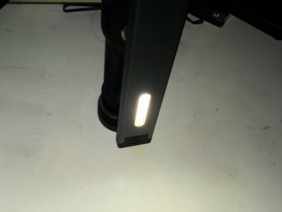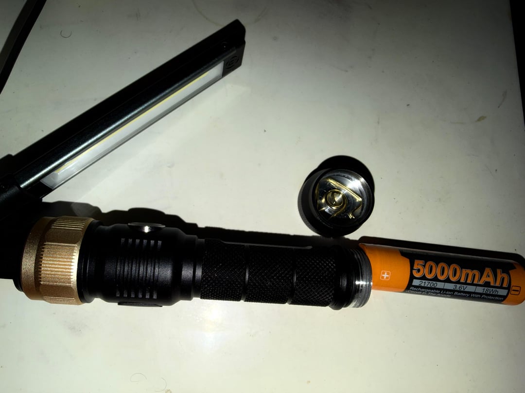What i like a out it the most is it will last over 5 hours on but than you can also use the warm white with a 21700 even flat top works not a bad fine for working around as an area light per 21700 battery the brand name is called hotligh i thought this worklight was very interesting because you can just throw any 21700 charge it via usb c the side light on top of the wand is 300 lumens of warm white light