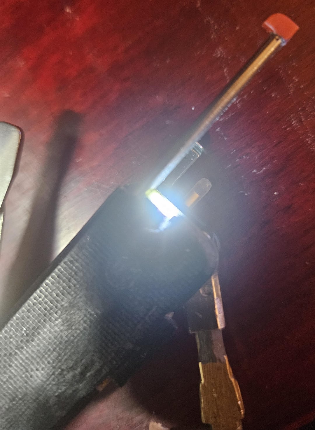 Modified a flex mini to hold house keys, a pen, a pin, a small ferro rod, glow stick a light and a glow bar.