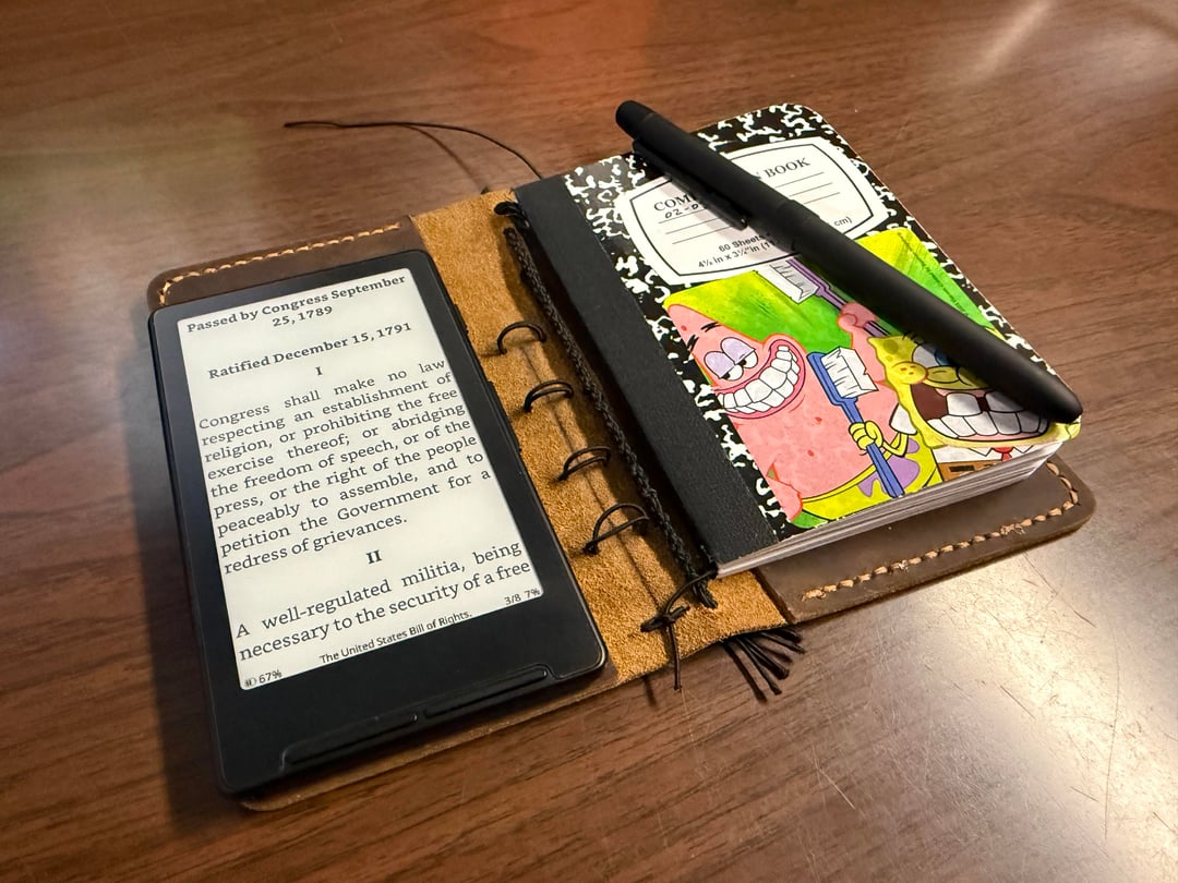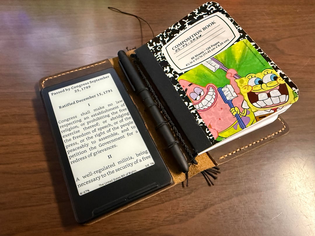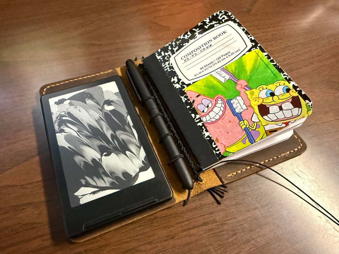 Very cool! How’s the e-reader attached to the notebook? Is the cover flap tucked into the pocket?