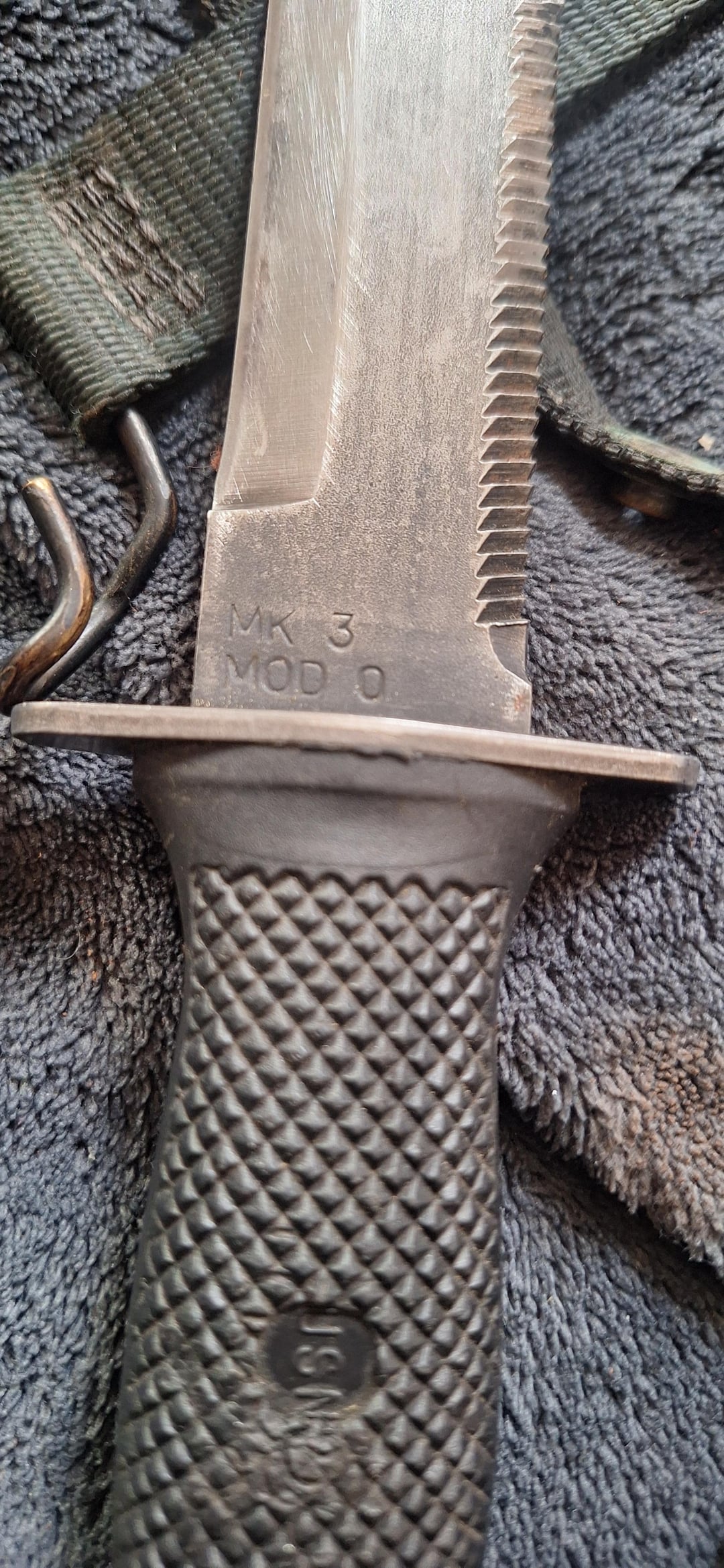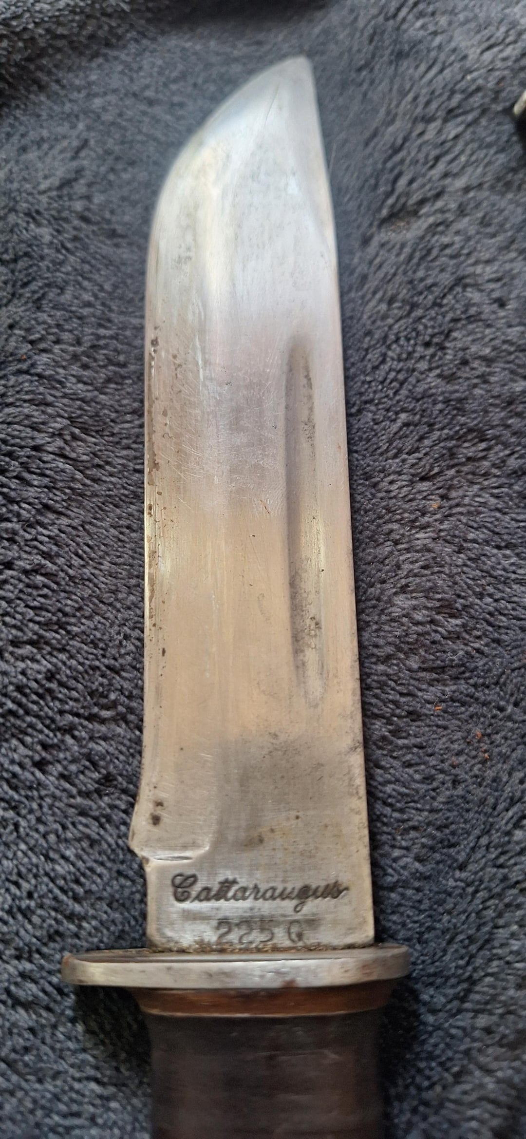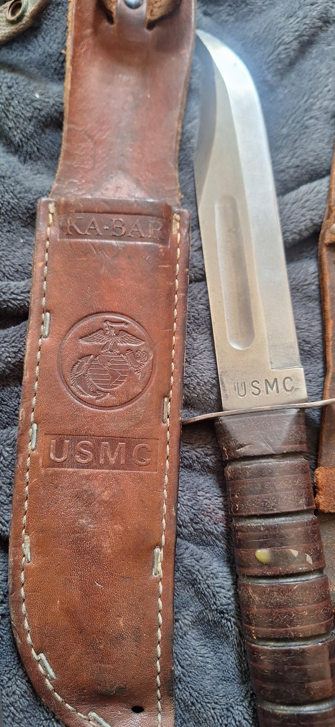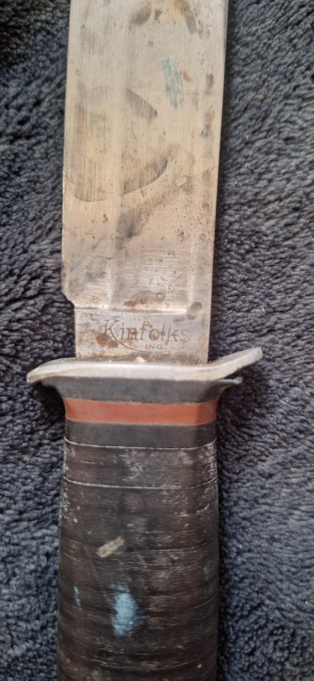 left to right, USN 2V376 MK3 MOD 0, KA-BAR USB MK2, KA-BAR USMC, KA-BAR, CATTARAUGUS 225G, KINFOLKS INC. Sorry about the caps lock but that's how it's written.