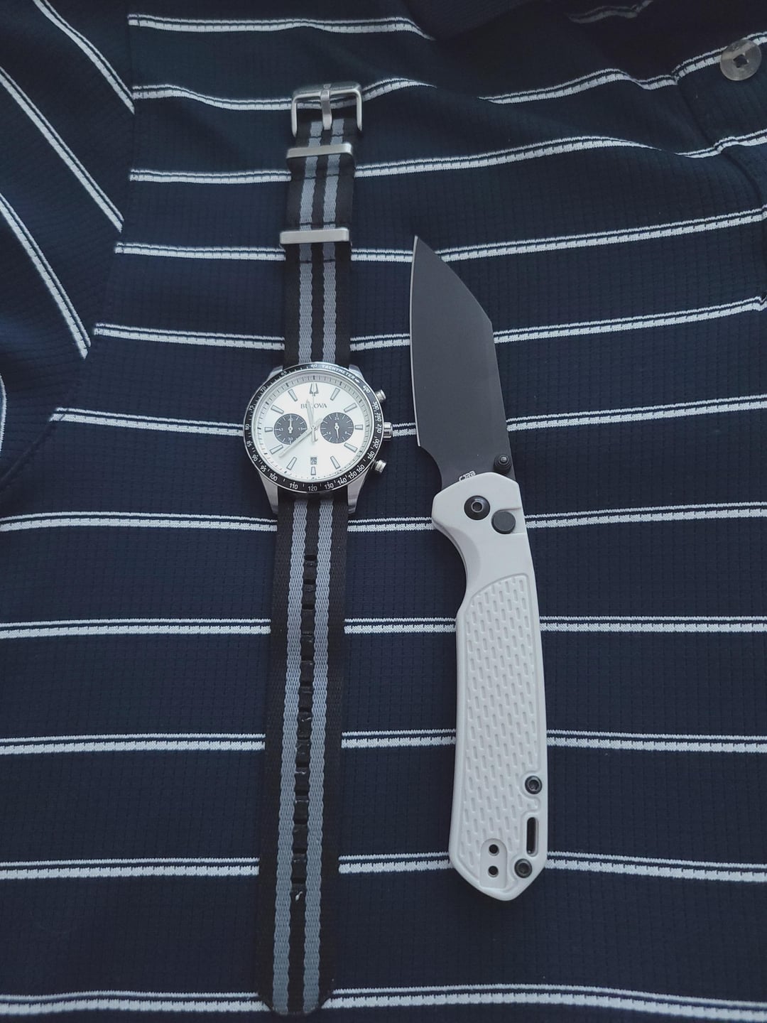 In EDC Thursday’s duo. . . Bulova Chronograph and CJRB Pyrite Light February 26, 2026 Thursday’s duo. . . Bulova Chronograph and CJRB Pyrite Light by davect01 EDC Prev Post My Loyal PD35 February 26, 2026 Next Post Thumb Stud Thursday February 26, 2026 Related Posts Clear skies fire me up! February 26, 2026 Sucker for brown leather and Ti February 26, 2026 today’s tools February 26, 2026 1 Comment AutoModerator 3 hours ago Thank you for posting to r/EDC! Include a detailed item list (make/model) within **1 hour** of submission. Lists can go in the title, a comment, or the image. Posts without lists will be removed. If you have already provided a list, not further action is needed, thanks | [FAQ](https://www.reddit.com/r/EDC/wiki/faq)*I am a bot, and this action was performed automatically. Please [contact the moderators of this subreddit](/message/compose/?to=/r/EDC) if you have any questions or concerns.*Write A CommentYou must be logged in to post a comment.