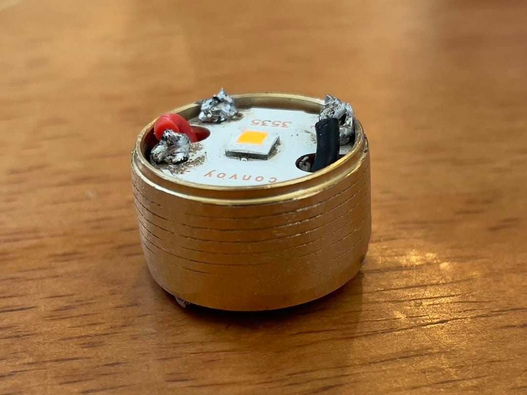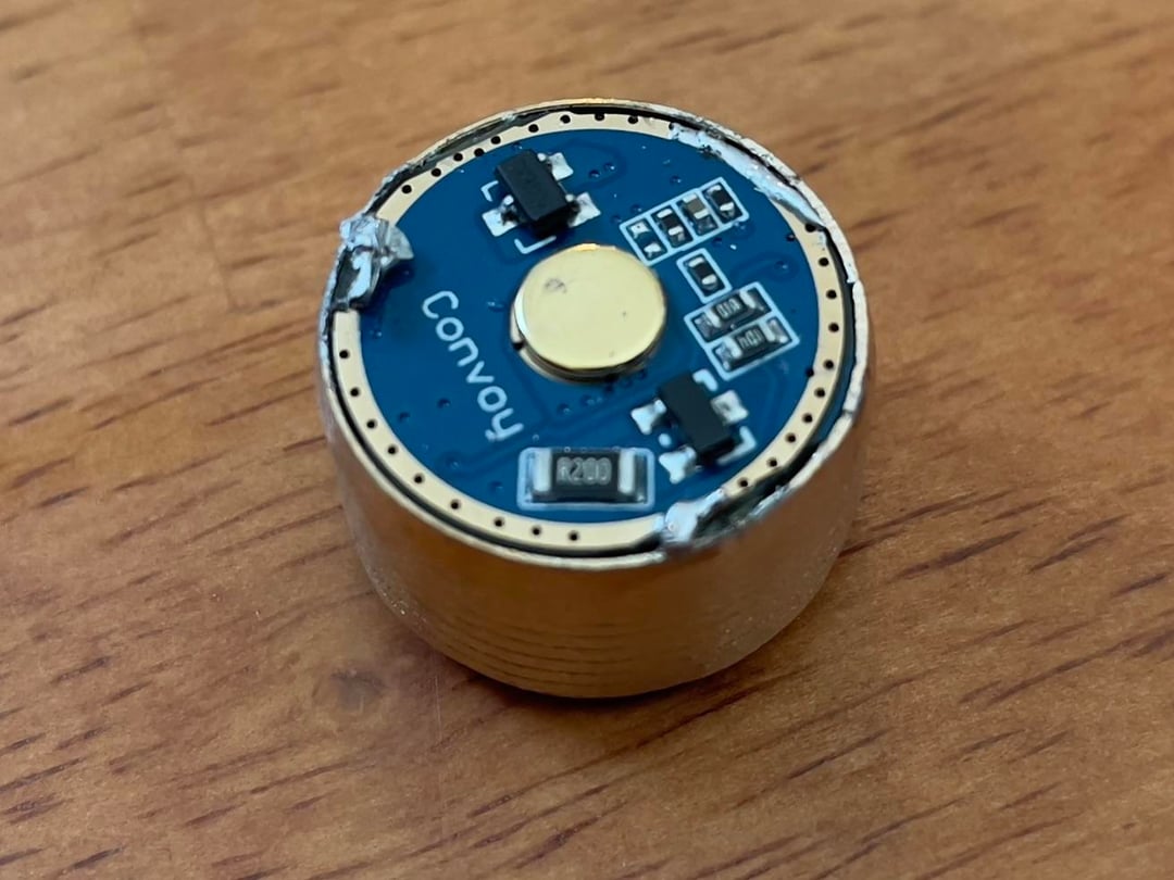 There’s a bit of a gap left between the negative end of the cell and the tail switch spring but it’s easily remedied by using some neodymium magnets for now. At some point I’ll make a proper spacer. I did this so I could experiment with different P60 drop-ins. Some drivers I could use have springs soldered to their contact point and those fill the gap perfectly. Also, this extra room allows for some variance between the length of 14500s and AA/Eneloops.