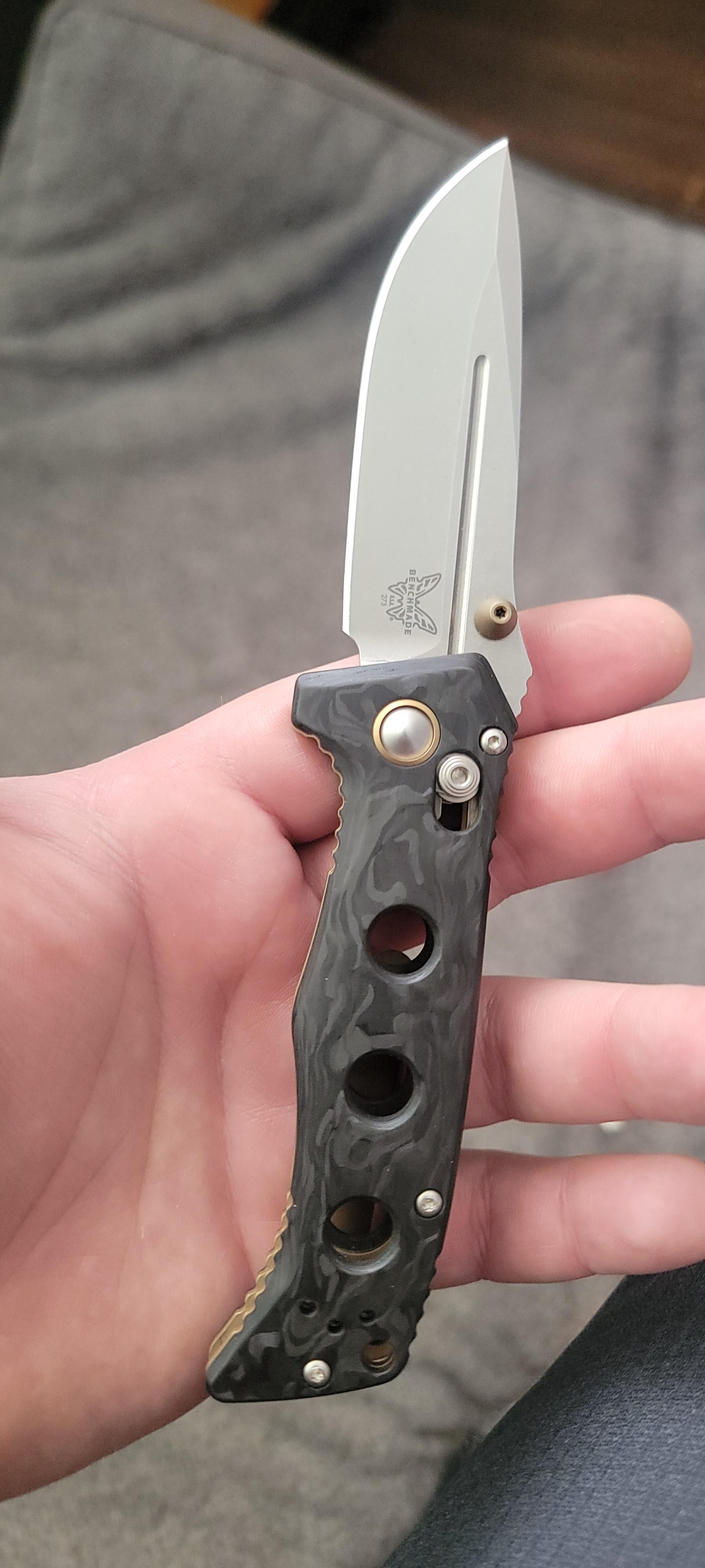 Love the look of these scales, im glad they started doing CF like this im not the biggest fan of the original CF look. I really like the weight and the feel in my hand. I think though that if I was to be doing a bunch of cutting with it that the top of the clip would definitely start to cut into my hand. Other than that its awesome. Best gift .