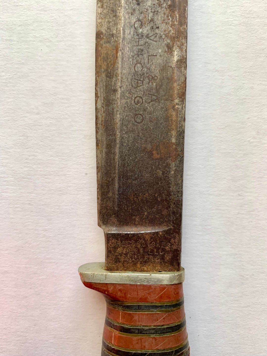 I’m clueless about knives and got this one and another recently but as you can see the condition isn’t the best. On the blade I can see it says “VL&A Chicago” but I can’t read what it says above the handle. I think on one side above the handle it says butcher or Sheffield? Ok the other side I don’t know.
