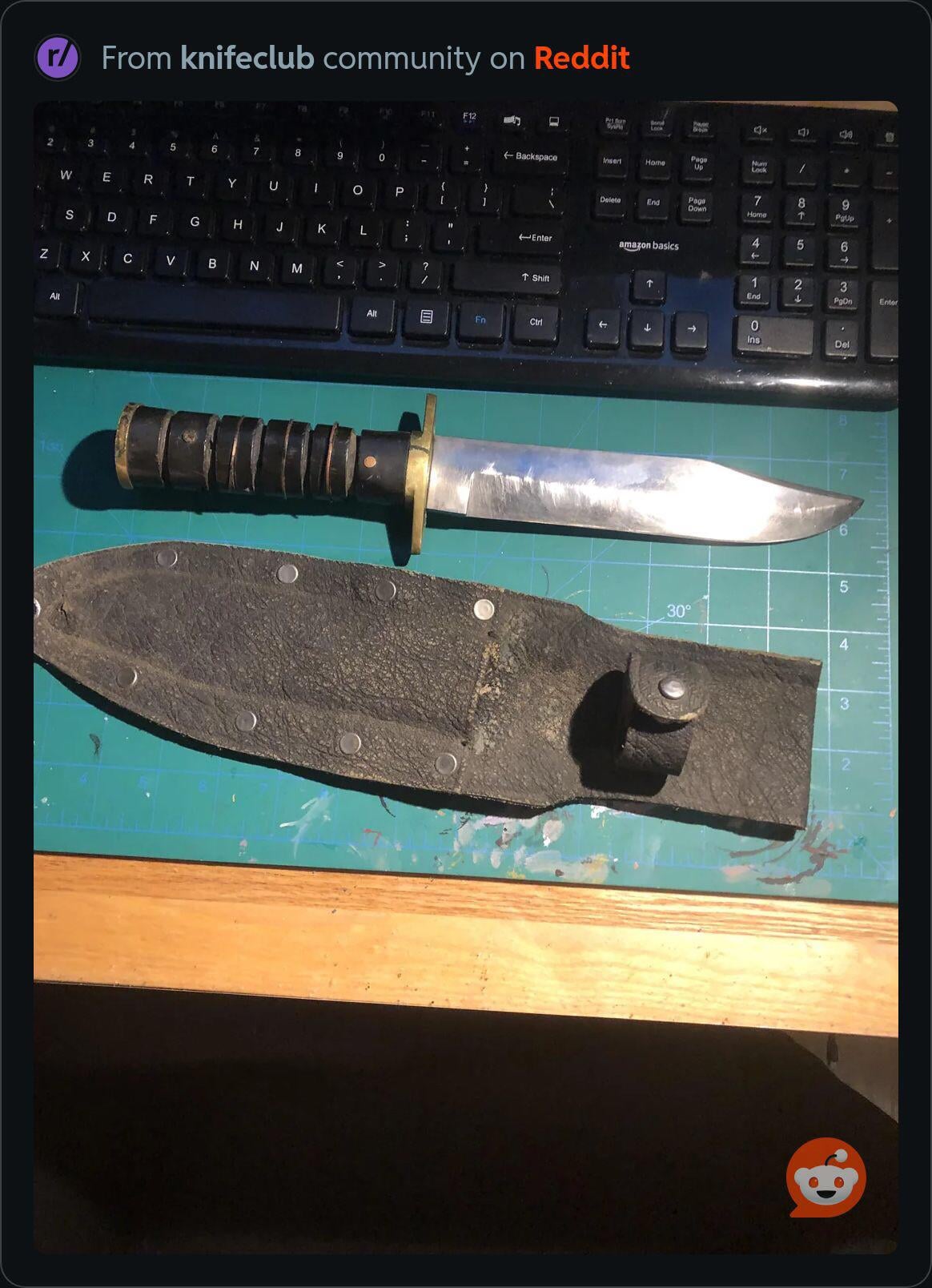 Got this knife from my uncle but there’s nothing on it to identify the make and model. I know it’s old, (anywhere from 1960-1980) any guesses? I’m mainly trying to know so I can see if I can find a new handle for it (the original is cracked)