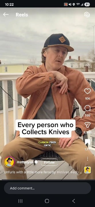 In KNIVES Yet the best determining factor of how comfortable we are with ourselves, is our ability to laugh at ourselves. February 28, 2026 Yet the best determining factor of how comfortable we are with ourselves, is our ability to laugh at ourselves. by Bloodmksthegrassgrow KnifeKnives Prev Post My version of EDC February 28, 2026 Next Post Aluminum honeycomb worry coins February 28, 2026 Related Posts Saturday Carries ☑️ February 28, 2026 Found on the job February 28, 2026 Cleaning day for the fancy ones. Only took 3 times to get the Sebenza back together right! We’re getting there! February 28, 2026 2 Comments enigma_tick 2 hours ago This is what my wife hears when I talk about knives. No_Medium_8796 2 hours ago Anyone got a source on a full on inbred fellatioWrite A CommentYou must be logged in to post a comment.