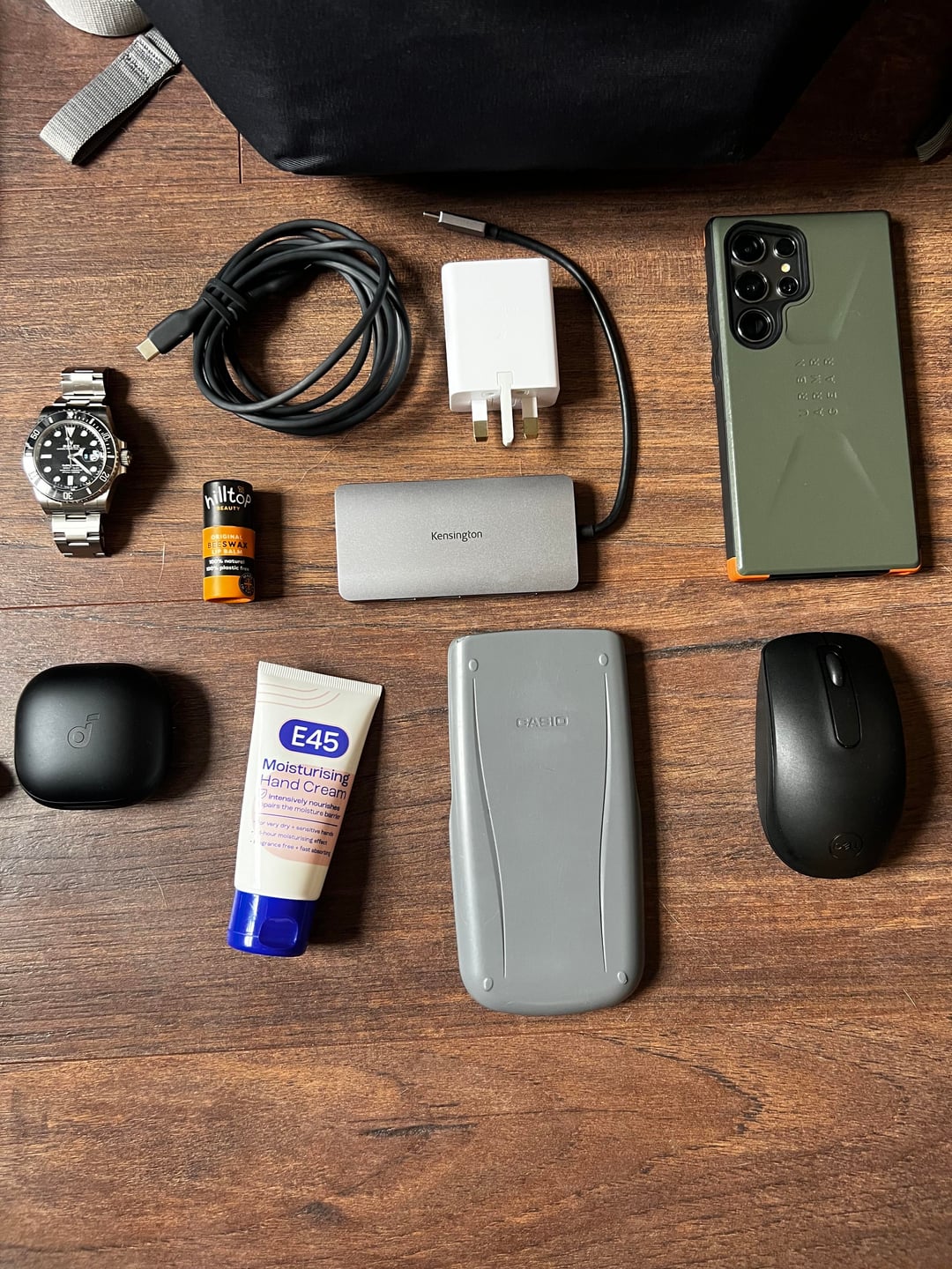 - Phone – Samsung S24 ultra in Urban Armour Gear Civilian olive drab case