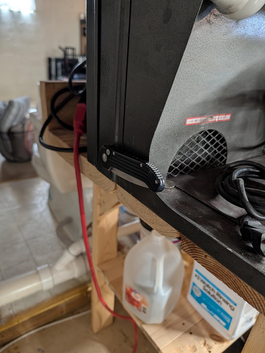 I just finished hanging new LED shop lights and they revealed that in a previously rather dark corner of my shop where my lathe and polishing machine live, was my LUDT. Somehow, when I was working on the lathe next to it, I must have bumped against the polishing machine and caught the clip of the LUDT on it, and there it stayed for the past few months. I was immediately overjoyed. I called my father, ran to tell my wife, and texted my buddies that I had found my LUDT, as they all graciously humored my mourning and decent in to madness while coping with losing my favorite knife. It is now back in my pocket where it should be, and all seems right in the world.