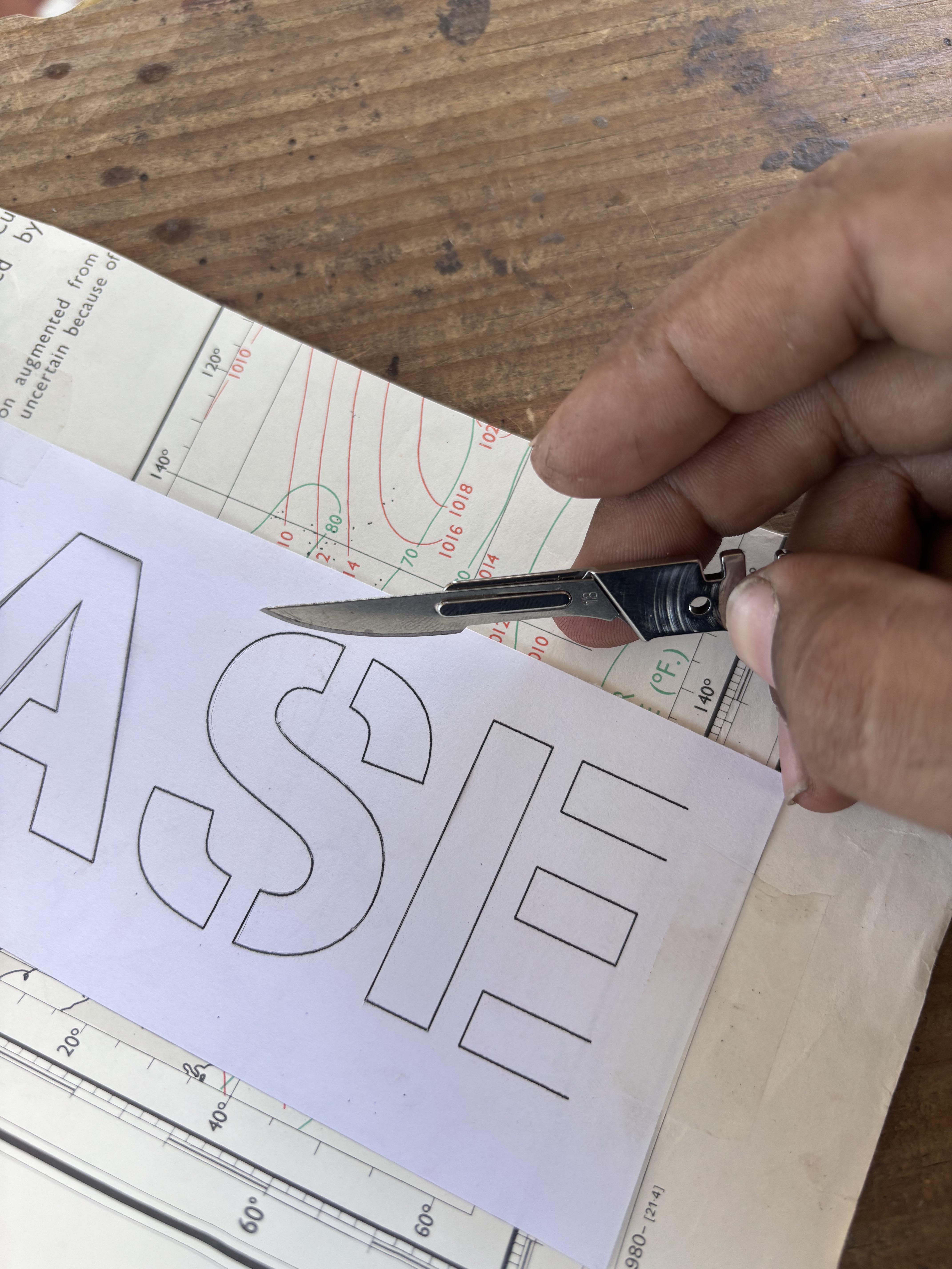 Cutting out some stencils. Usually I use a craft knife but all the blades at work are dull. Removing the scalpel tool from the Roxon made quick work