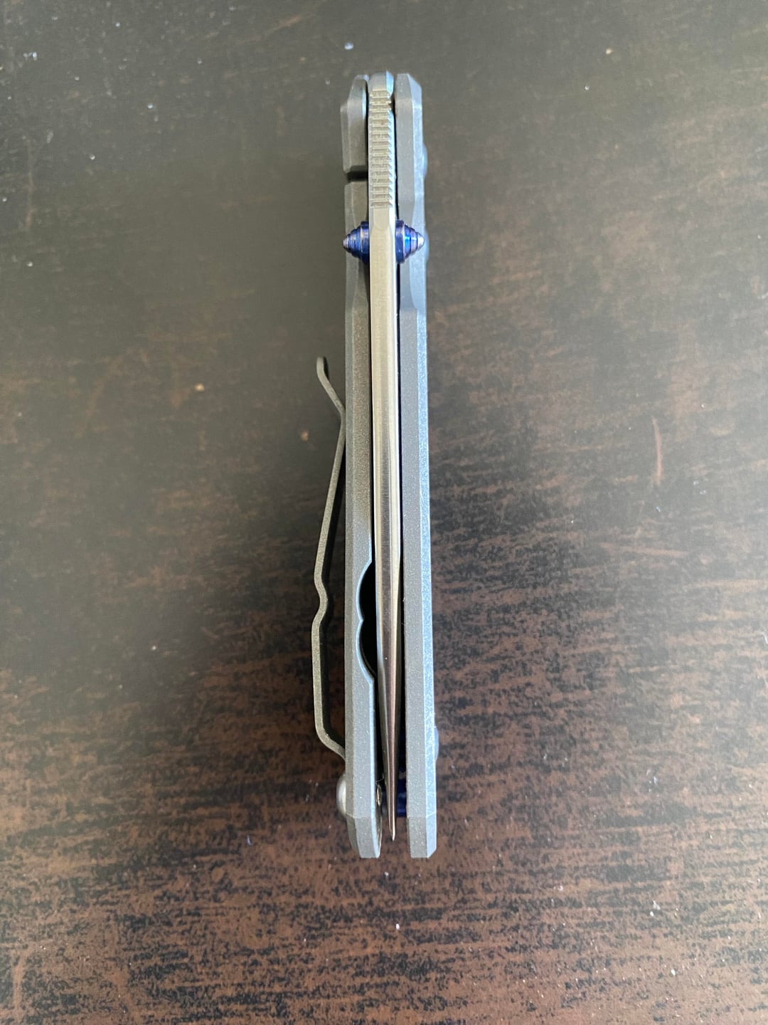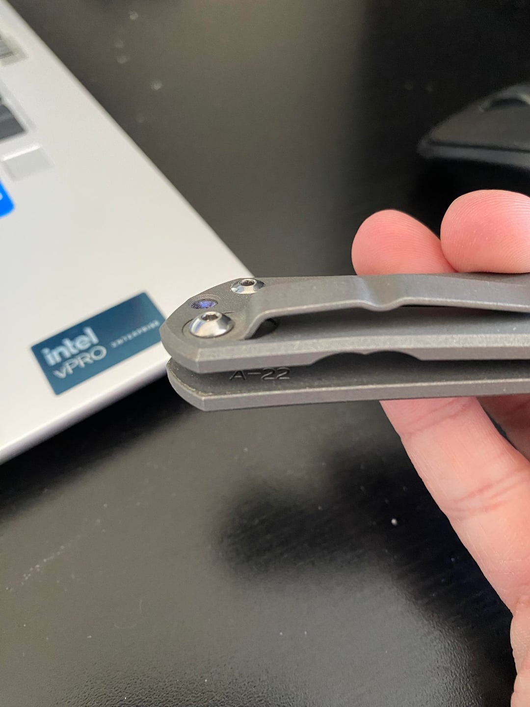Finally picked up my grail, a used CRK Small Sebenza today. Absolutely loving the action. One tiny thing bugging me is the logo engraving feels a bit light, and the double thumb stud blue looks a bit different than I expected. Can anyone confirm if this looks right? The date stamps on both scales are present too.