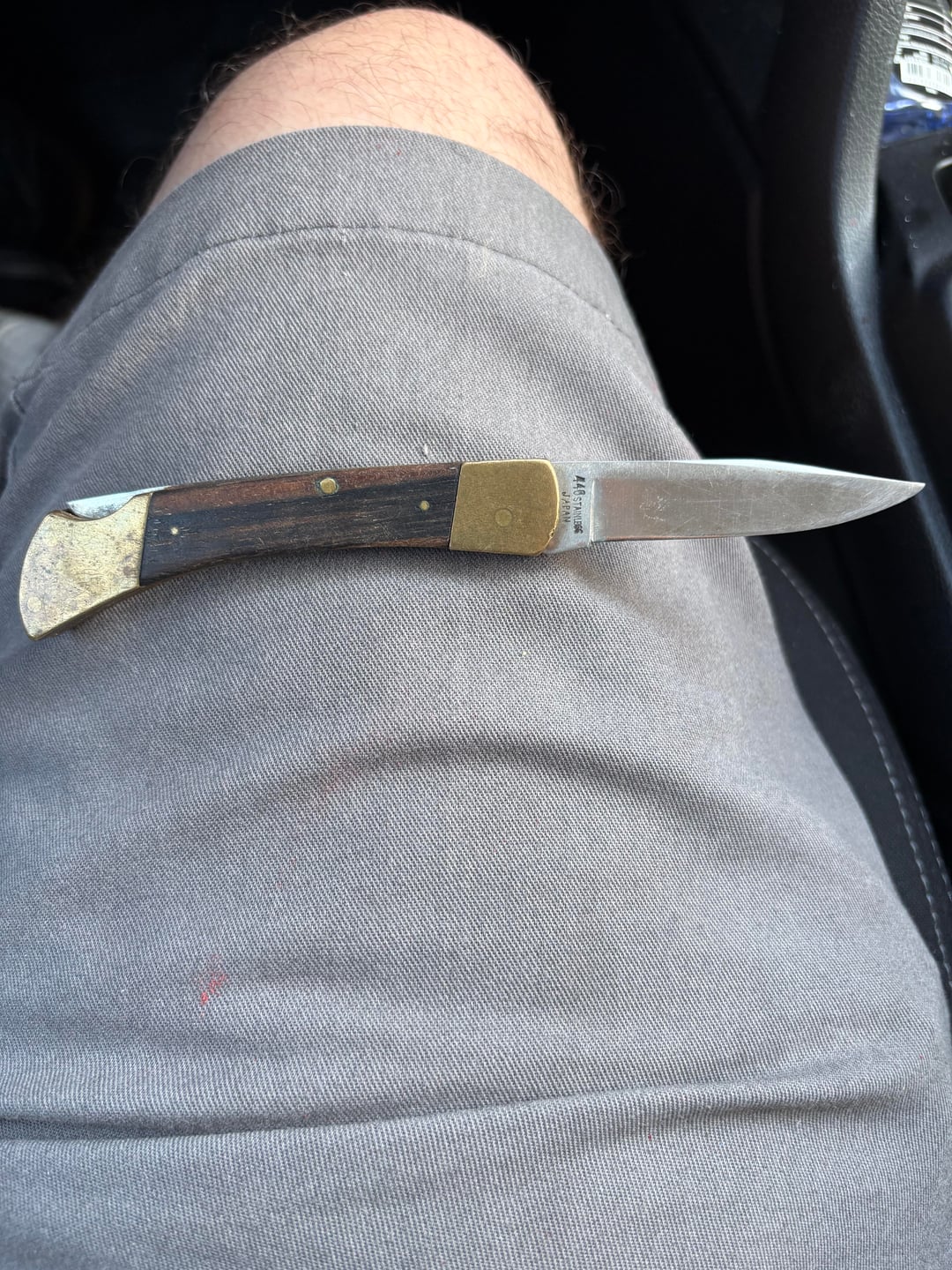 Howdy! Starting this off by saying I know you can buy another one online for $40. Found it at an estate I cleared out for a client. That being said: a good friend said it looks like they ground down tip and shortened it a little. Because of that the edge plays peek a boo when closed. Still sharp so not a good idea to have in my pocket. So the question is this… anyway to fix it where the tip of the blade isn’t exposed when closer?