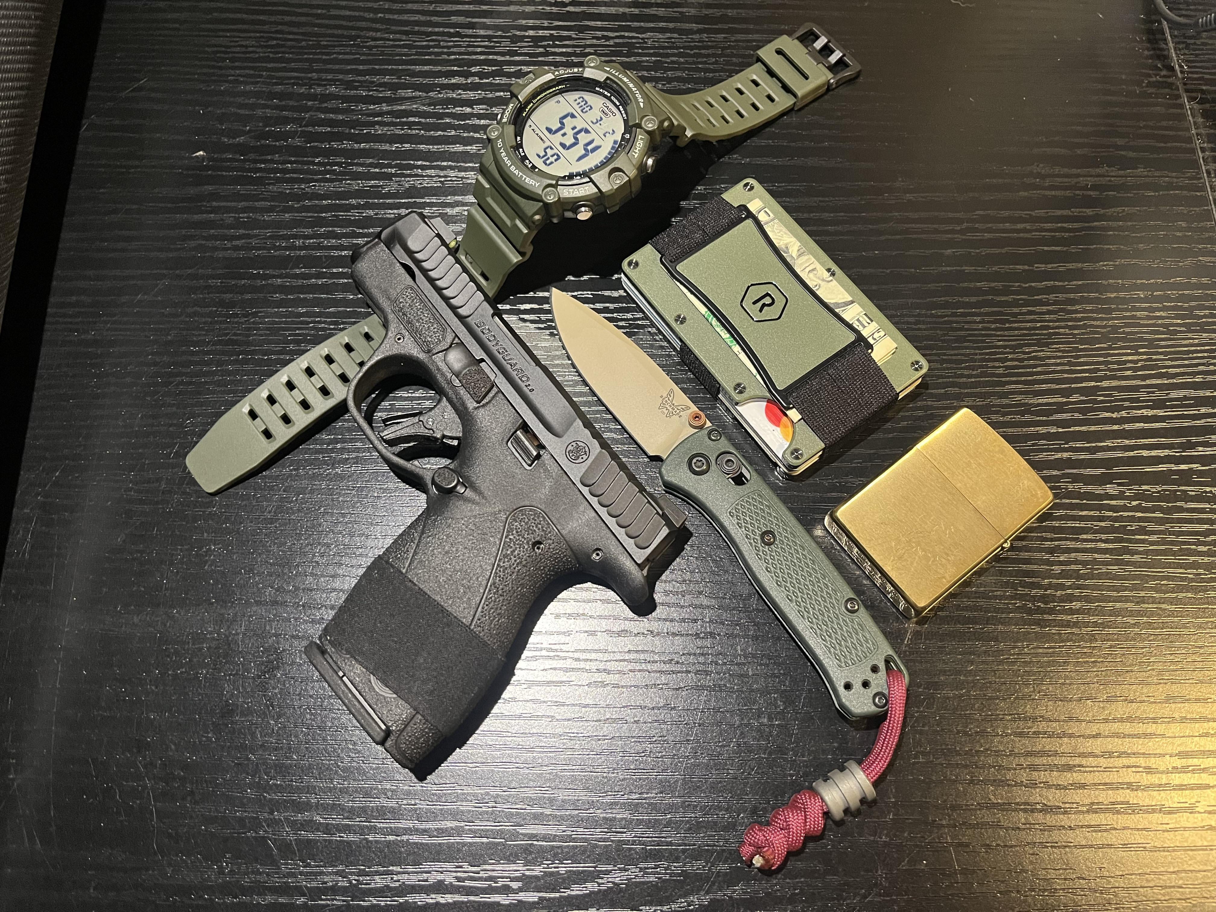 In EDC Now that it’s getting warm again… March 2, 2026 Shorts carry!!! (or when I’m being lazy and don’t wanna carry 20lbs of stuff)Smith & Wesson BG 2.0Benchmade Mini Bugout Ridge walletBrass Zippo with butane insertCasio AE1500by Lack9221 EDC Prev Post Today’s Blade: Hinderer Full Track – Battlefield Pick Up #1366 #NKD March 2, 2026 Next Post NKD: Vosteed Porcupine March 2, 2026 Related Posts Trying out a crossbar lock for the first time March 3, 2026 A few new pieces March 2, 2026 Off To The Gym… March 2, 2026 1 Comment AutoModerator 2 hours ago Thank you for posting to r/EDC! Include a detailed item list (make/model) within **1 hour** of submission. Lists can go in the title, a comment, or the image. Posts without lists will be removed. If you have already provided a list, not further action is needed, thanks | [FAQ](https://www.reddit.com/r/EDC/wiki/faq)*I am a bot, and this action was performed automatically. Please [contact the moderators of this subreddit](/message/compose/?to=/r/EDC) if you have any questions or concerns.*Write A CommentYou must be logged in to post a comment.