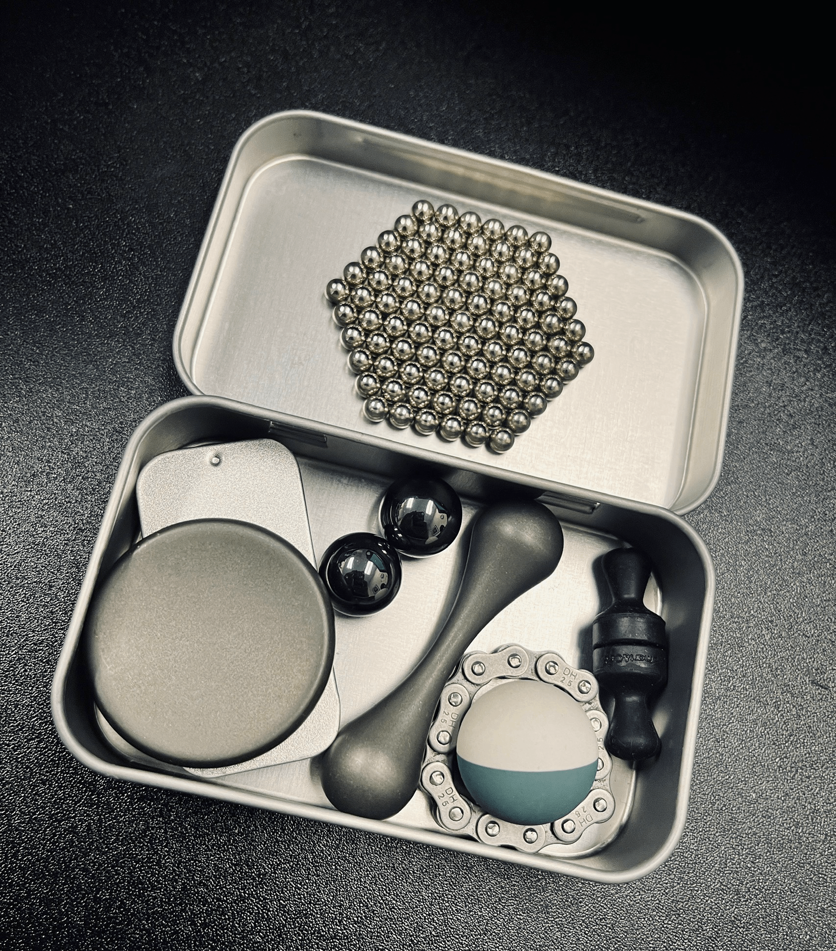 This is a small kit with some fidget toys that lives in my daily carry bag.