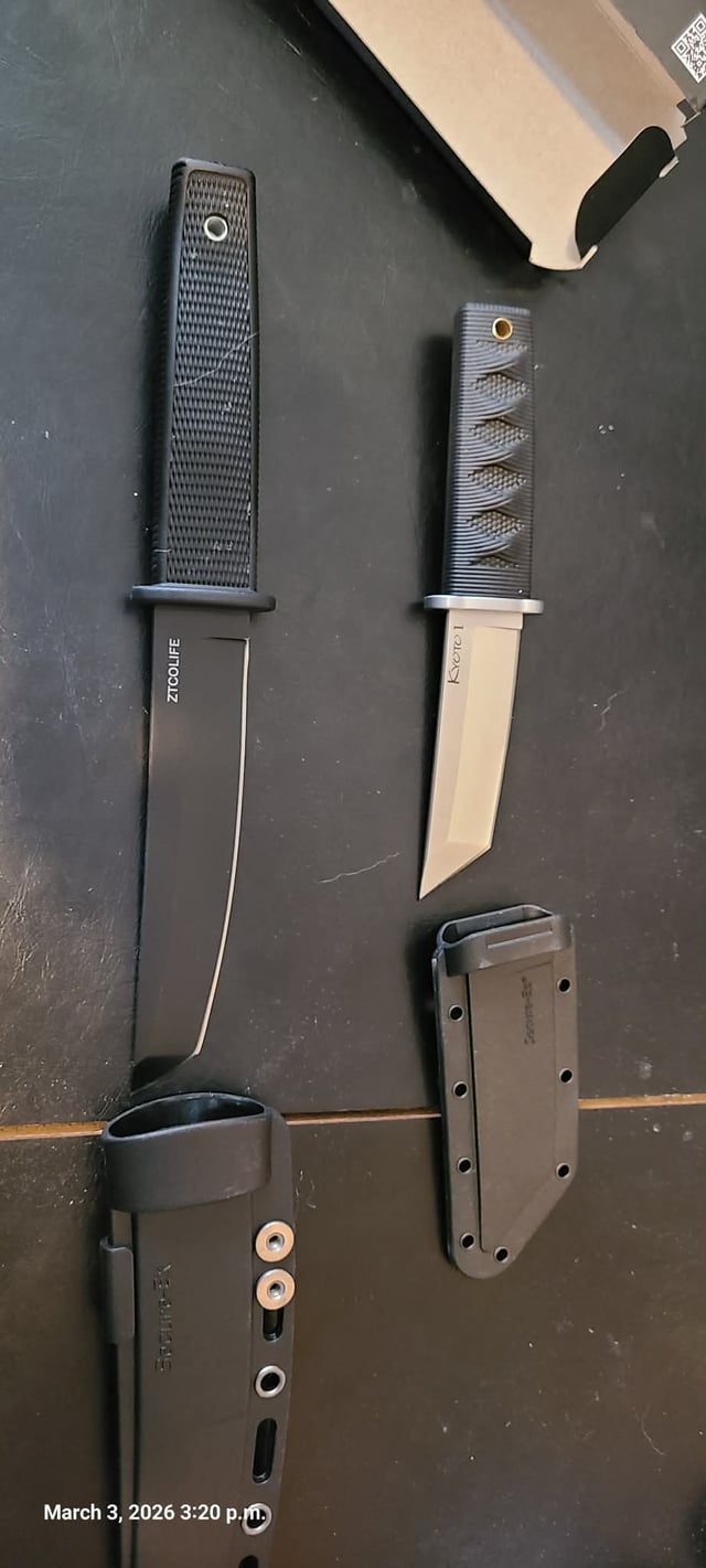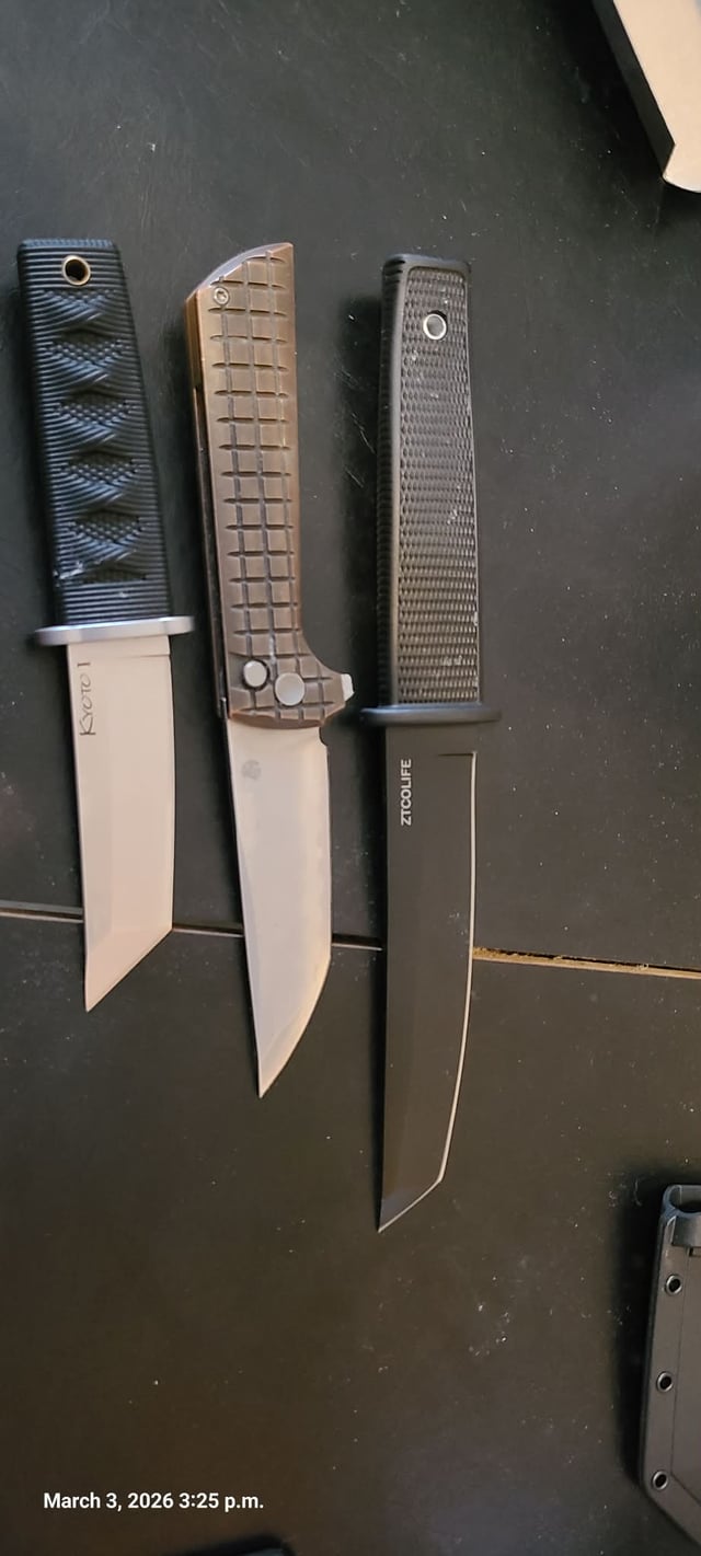 In KNIVES The Kyoto is smaller than I thought it’d be March 3, 2026 Copper handle is a north mountain chop2, I've had it for a year. All cut paper. The big one was an impulse buy for $30 from ztcolife. I like katana looking knives. The Kyoto is almost comically small in the hand.by DJGammaRabbit KnifeKnives Prev Post Double duty March 3, 2026 Next Post Malkoff VME head help. March 3, 2026 Related Posts Well This Message Went Unheeded March 3, 2026 Knifes are friends March 3, 2026 ZT and HINDERER March 3, 2026Write A CommentYou must be logged in to post a comment.