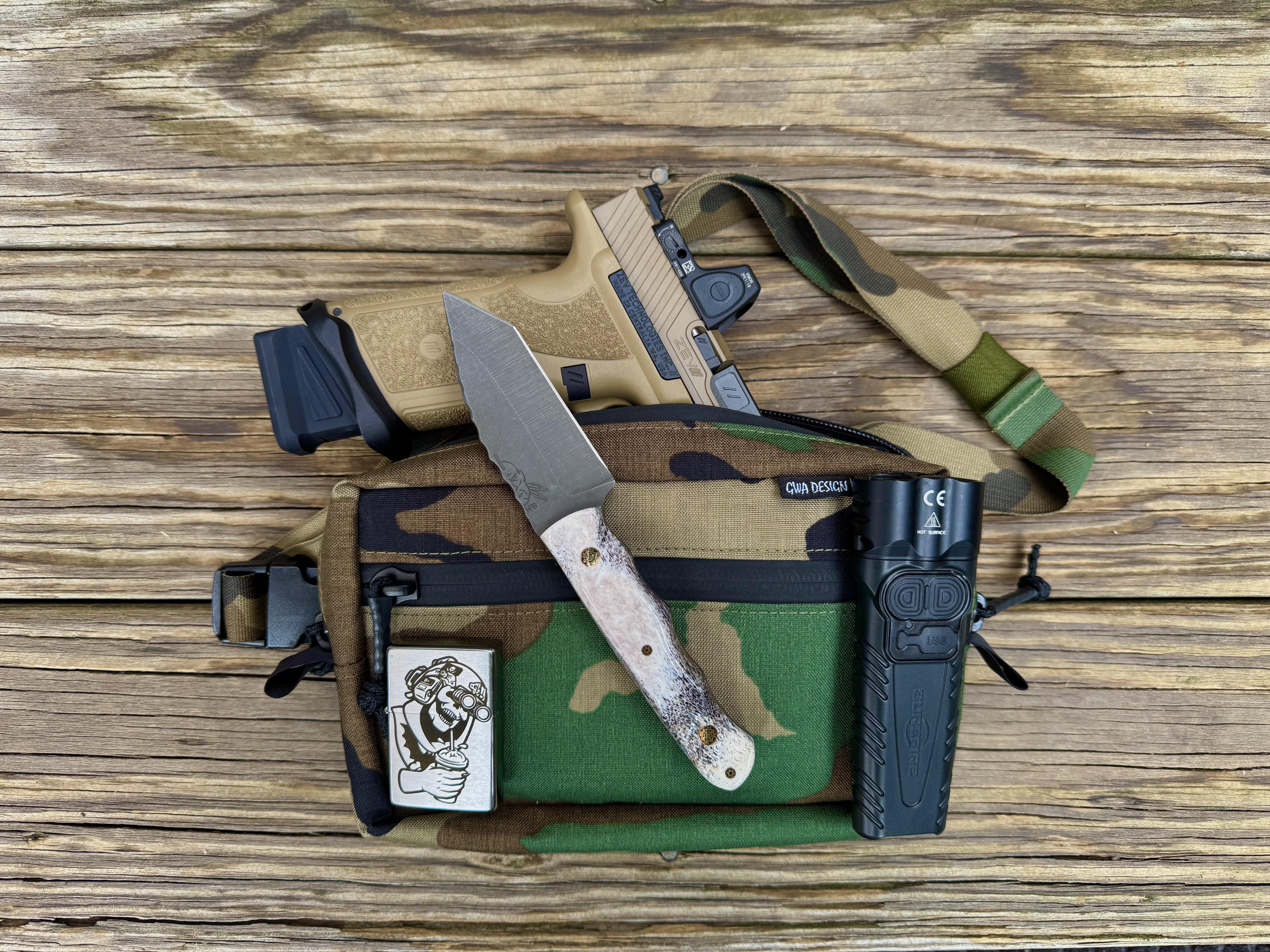 Zev OZ9 /// GWA Convertible Deluxe Alpha X50 M81 Woodland /// Wasteland Kooks Zippo /// Surefire Stiletto Pro II /// HFB One-Off Tanto, Elk Antler
