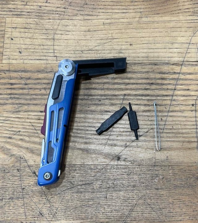 And I 3d print something to fill the gap left by the pliers, now it can hold two bits, tweezers, and a magnet to keep the bits in place and to use to pick up small metal things