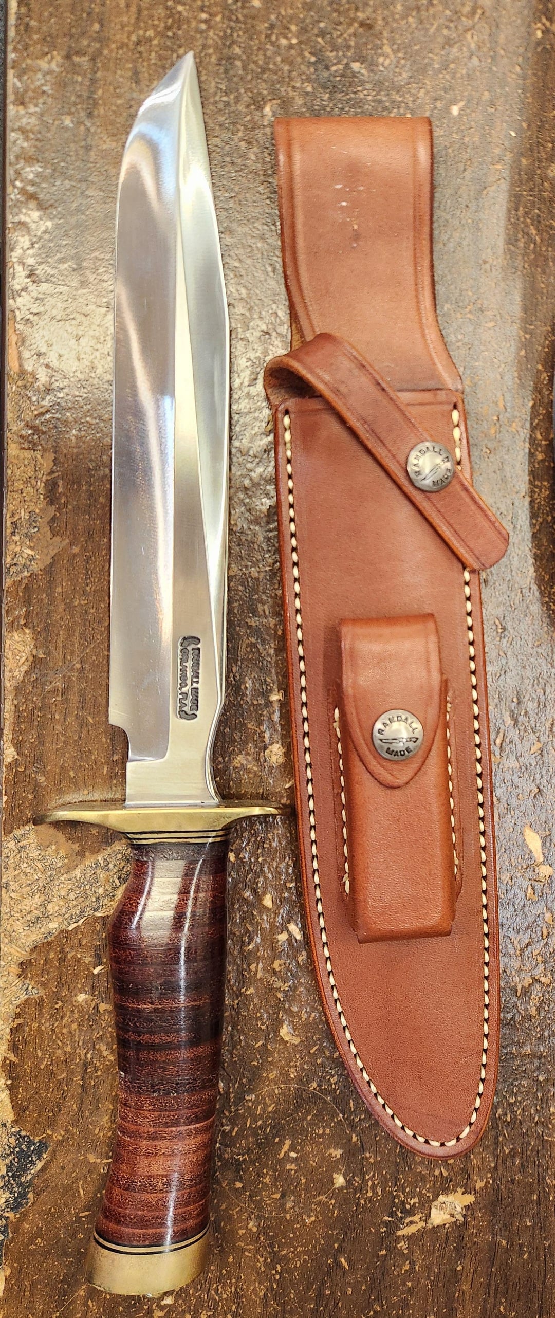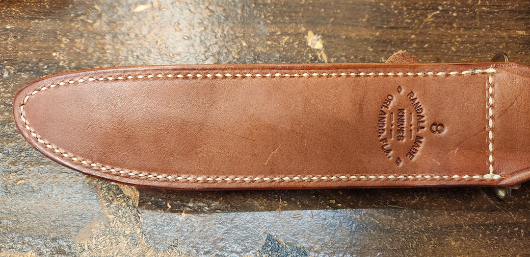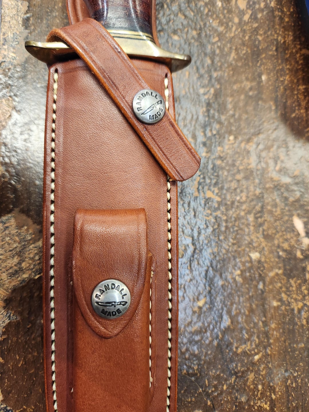 Hey y'all, I have a coworker who has a Randall knife and is trying to nail down exactly what model it is, as well as the era. From what I can tell, it seems fairly modern (the snaps on the sheath, imprint on the back of the sheath, and the logo on the blade) but I figured I would ask here before giving him an idea of what he should try and sell it for, or put it online for. It has an uncommonly long blade, at approximately 8 1/4 inches, and the overall length is 13 inches. Any help would be wonderful!