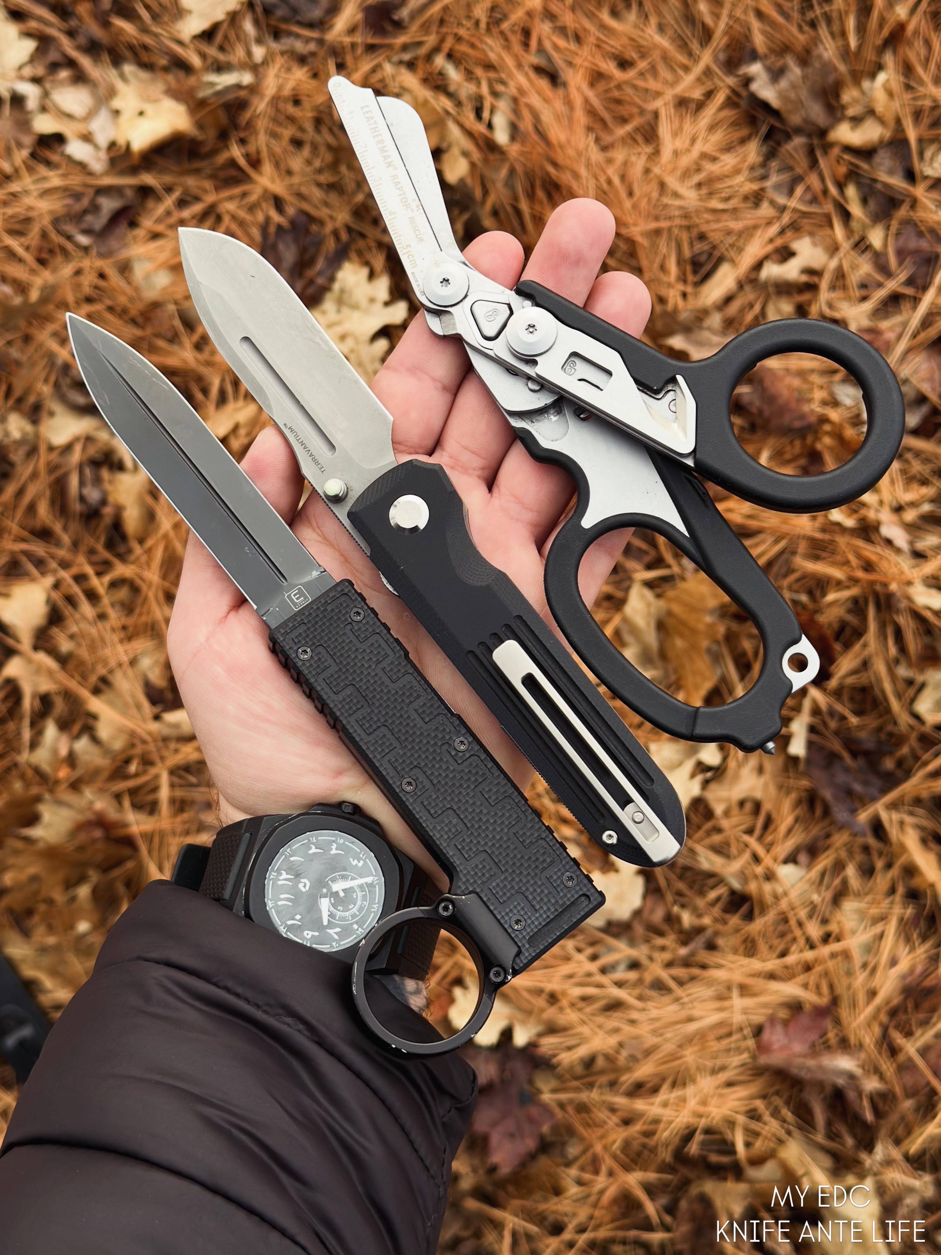 K, but why? You’re carrying two knives and they both suck. And these shears? For what?