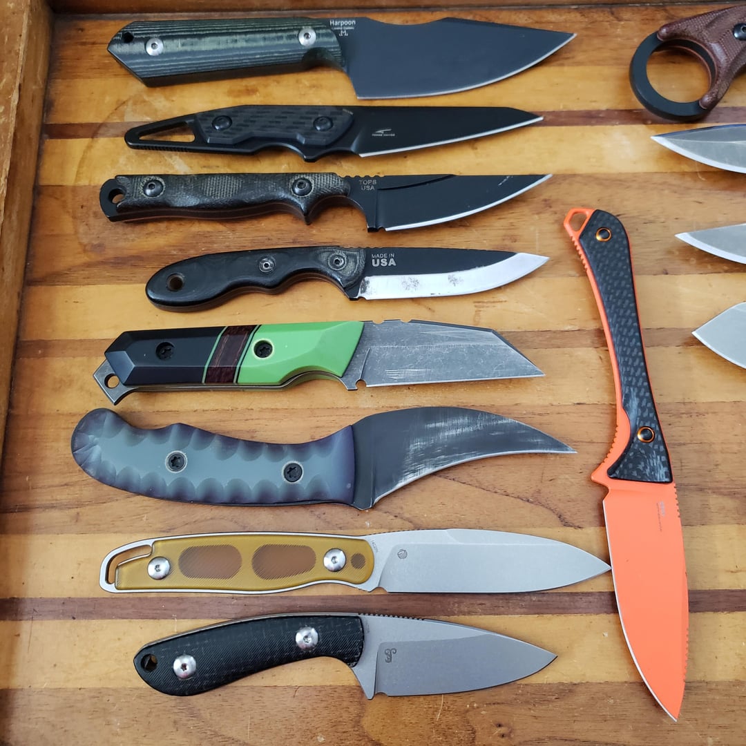 Some of my most carried fixed blades….. far from everything..I just tried to narrow it down to max 4 inch cutting edge..and under.. really they are all 3- no bigger than 4 inch…blades…so..definitely all front pocket carryable