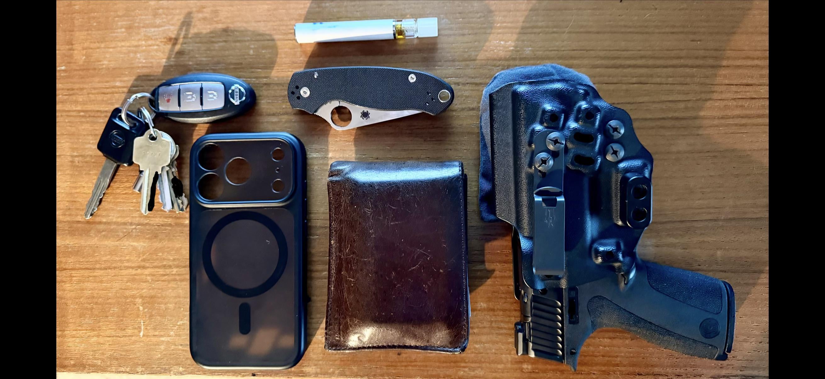 In EDC Everyday March 5, 2026 Spyderco Para 3S&W M&P Shield XTenicor Certum 3 holsterWalletKeysiPhone 17 Pro by HoneySportCruiser86 EDC Prev Post My Choices Today. ShareYours. March 5, 2026 Next Post Today’s pocket check March 5, 2026 Related Posts Old and New March 5, 2026 Today’s load out March 5, 2026 My favourite stuff! March 5, 2026 1 Comment AutoModerator 2 hours ago Thank you for posting to r/EDC! Include a detailed item list (make/model) within **1 hour** of submission. Lists can go in the title, a comment, or the image. Posts without lists will be removed. If you have already provided a list, not further action is needed, thanks | [FAQ](https://www.reddit.com/r/EDC/wiki/faq)*I am a bot, and this action was performed automatically. Please [contact the moderators of this subreddit](/message/compose/?to=/r/EDC) if you have any questions or concerns.*Write A CommentYou must be logged in to post a comment.