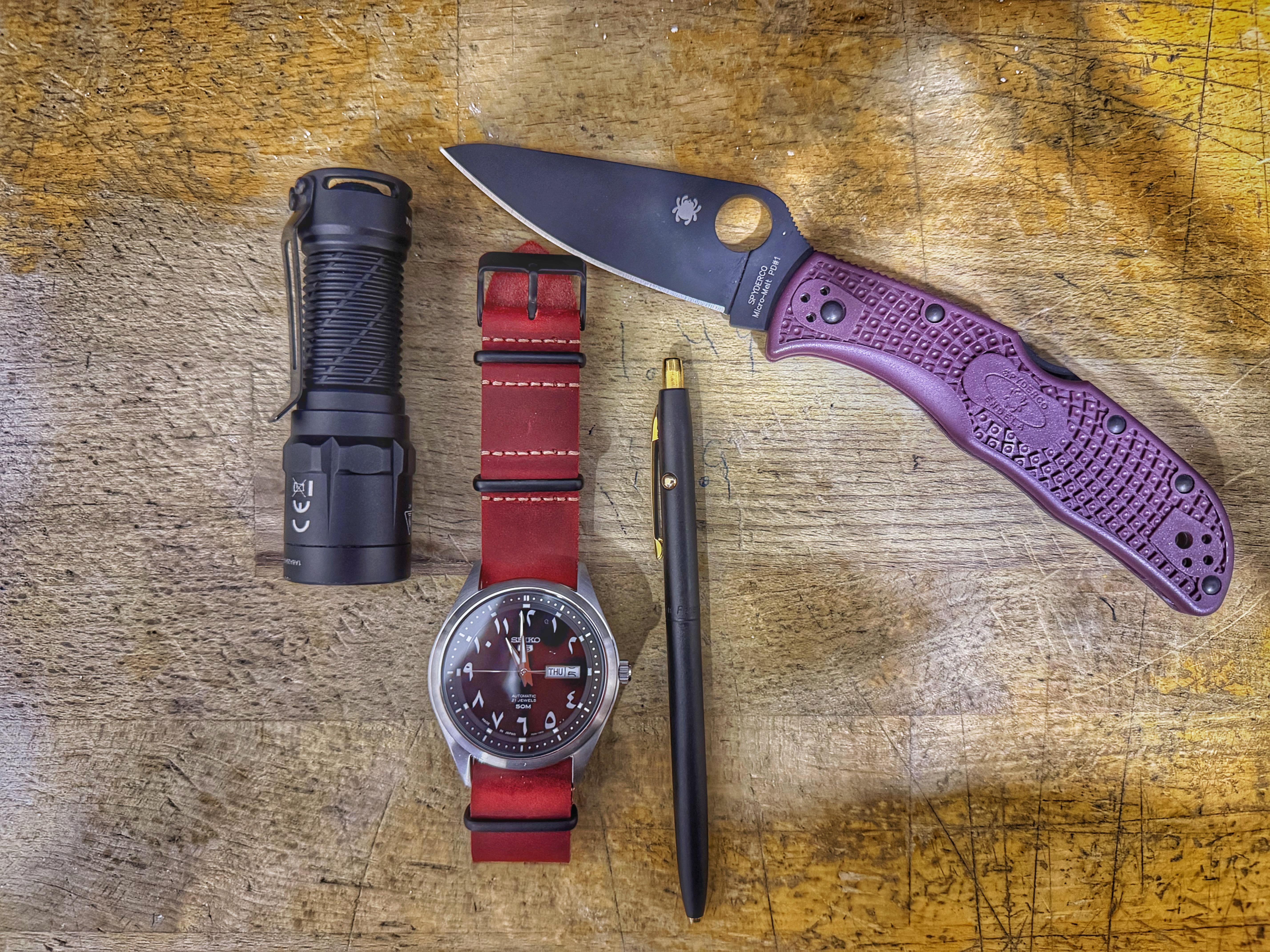 In EDC Lightweight Carry March 6, 2026 Decided to go with a minimal approach tonight.Nitecore MT1C ProSeiko SNPK21 Fisher Space PenSpyderco Encelada Lightweightby JordanSVail EDC Prev Post Can you guess what state I’m from? March 6, 2026 Next Post RSK custom! March 6, 2026 Related Posts 29M – What does my load out say about me? March 6, 2026 Couldnt find the big metal hook thing at work, Cobra xs is all i need. Lifted it enough to get my hand under for the rest of the way off. March 6, 2026 Thursday March 6, 2026 1 Comment AutoModerator 4 hours ago Thank you for posting to r/EDC! Include a detailed item list (make/model) within **1 hour** of submission. Lists can go in the title, a comment, or the image. Posts without lists will be removed. If you have already provided a list, not further action is needed, thanks | [FAQ](https://www.reddit.com/r/EDC/wiki/faq)*I am a bot, and this action was performed automatically. Please [contact the moderators of this subreddit](/message/compose/?to=/r/EDC) if you have any questions or concerns.*Write A CommentYou must be logged in to post a comment.