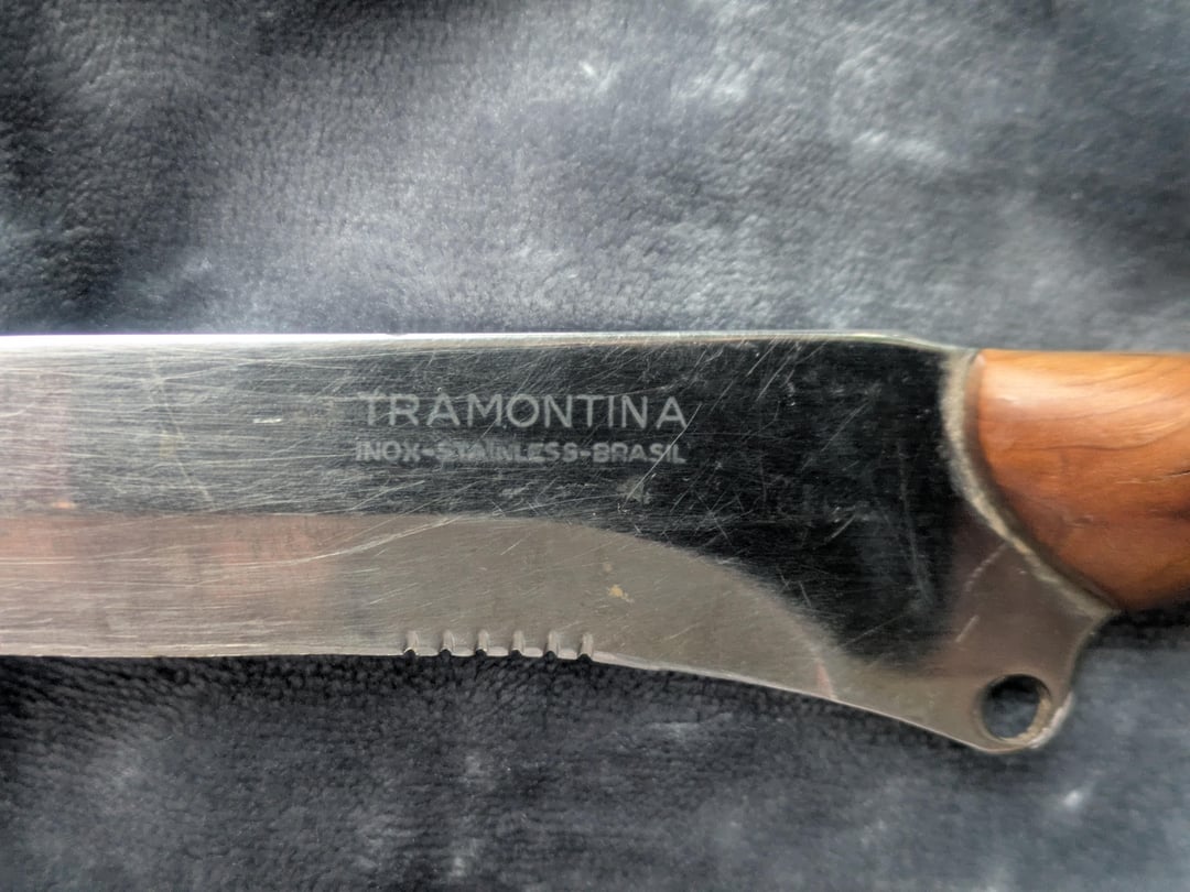 Tramontina is a well known Brazilian brand that makes kitchenware. I didn’t even know they made knives, but I wouldn’t think highly of anything that just says stainless steel and doesn’t say what kind of steel.