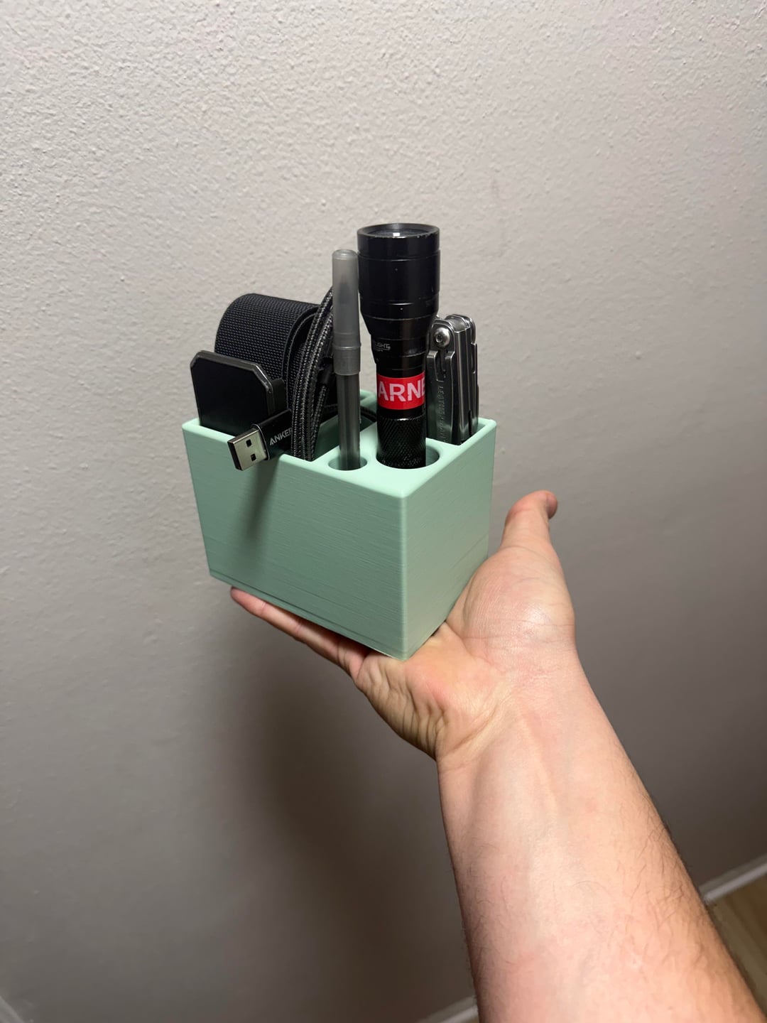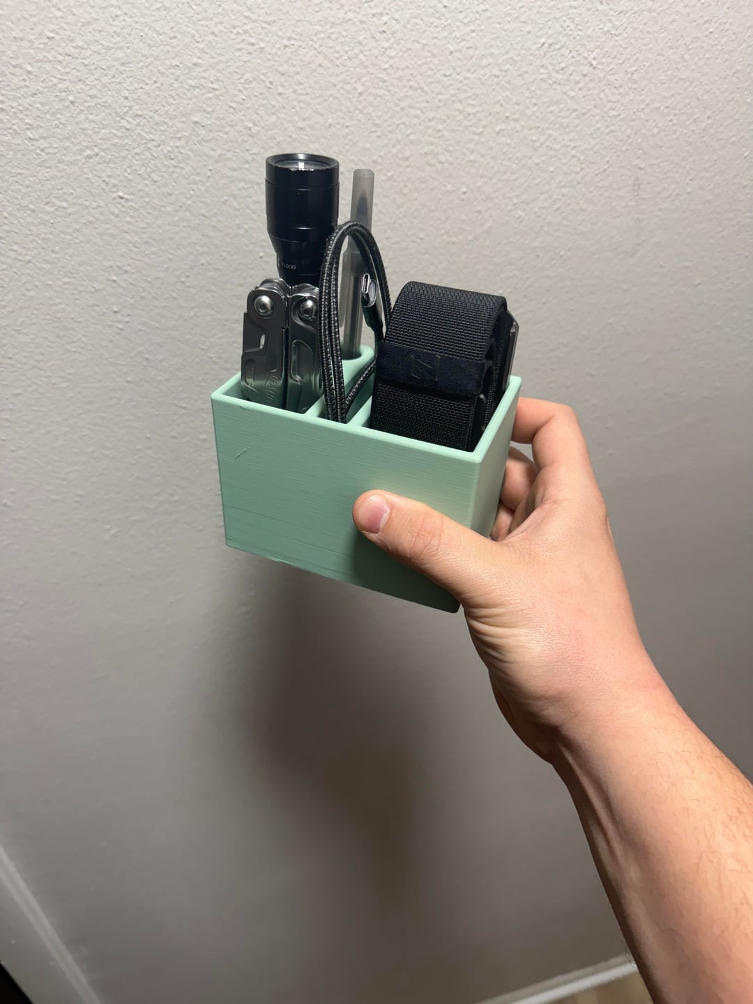 I am a paramedic and I have been going through a simpleton phase of what I need to EDC when I work. Pen, flashlight, phone charger, and belt (specific belt for work) and I designed and 3D printed a holder for it all