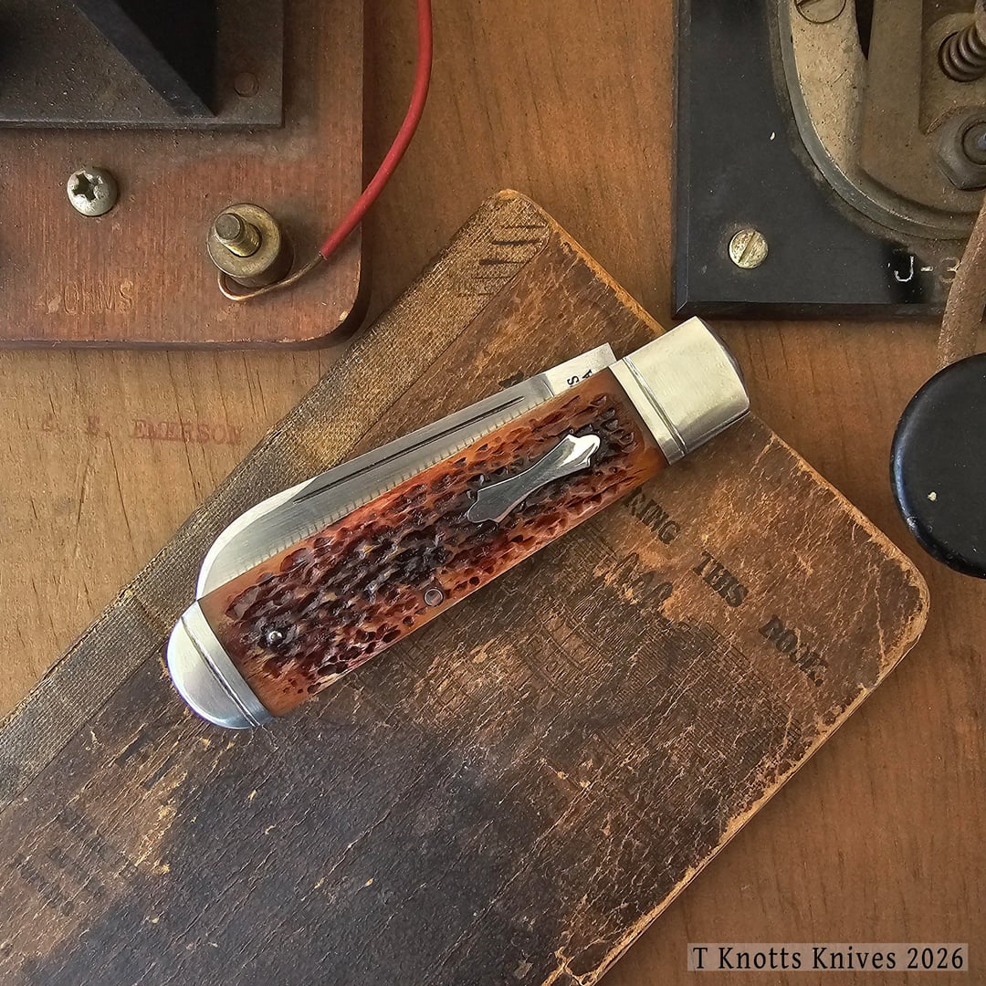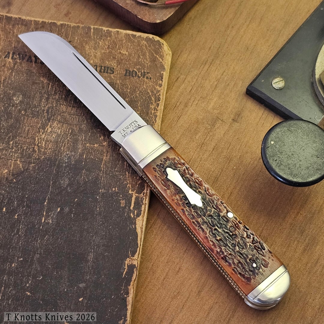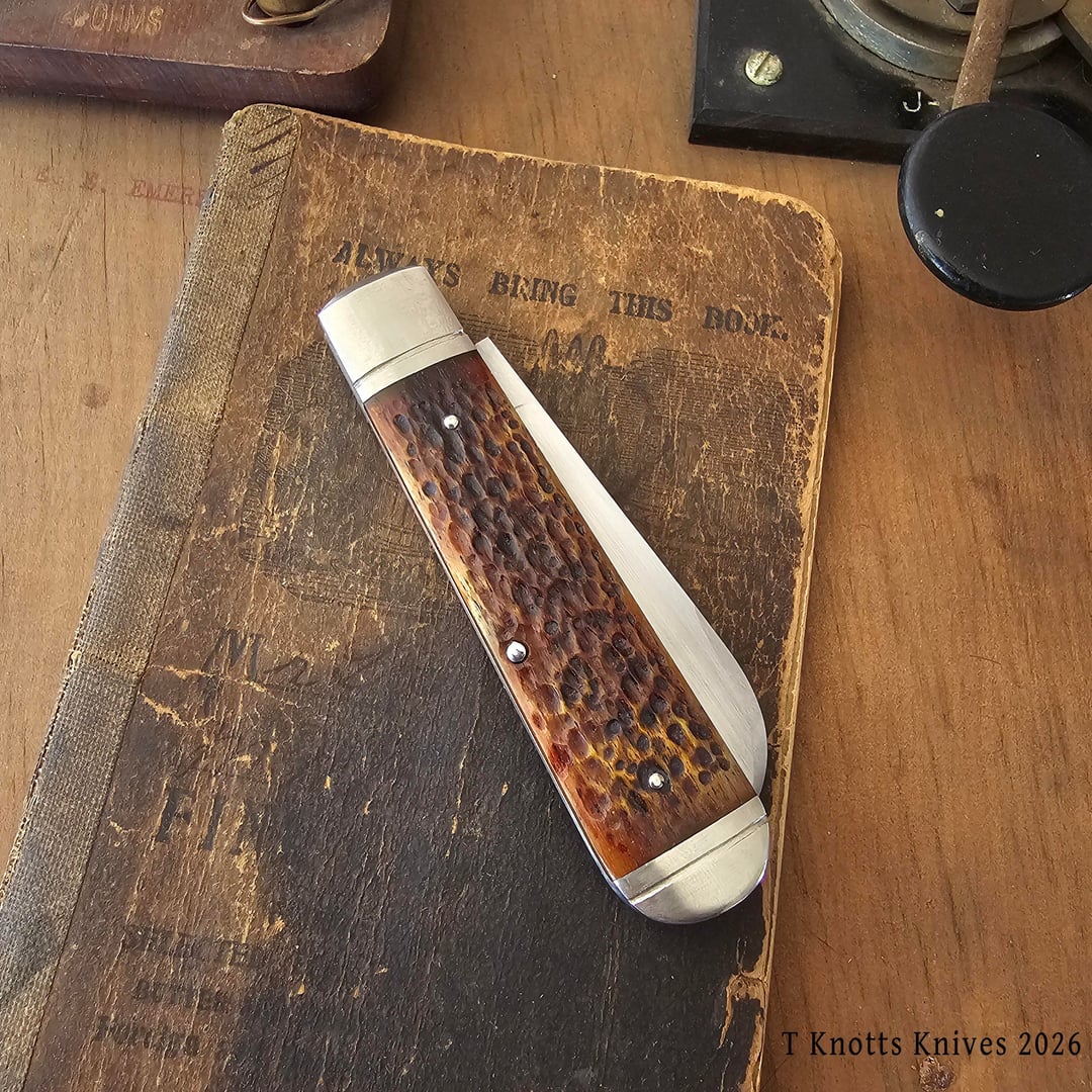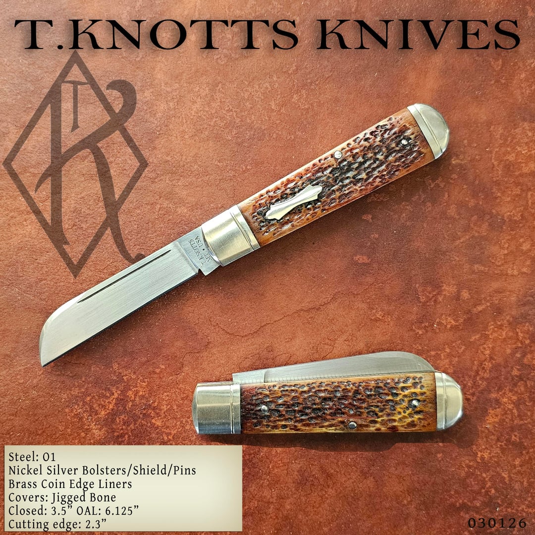 Hello all, showing off my latest build. This is sheepsfoot slip joint (in O1) with jigged bone covers. Nickel silver bolsters, pins, pinned shield and coin edged brass liners.