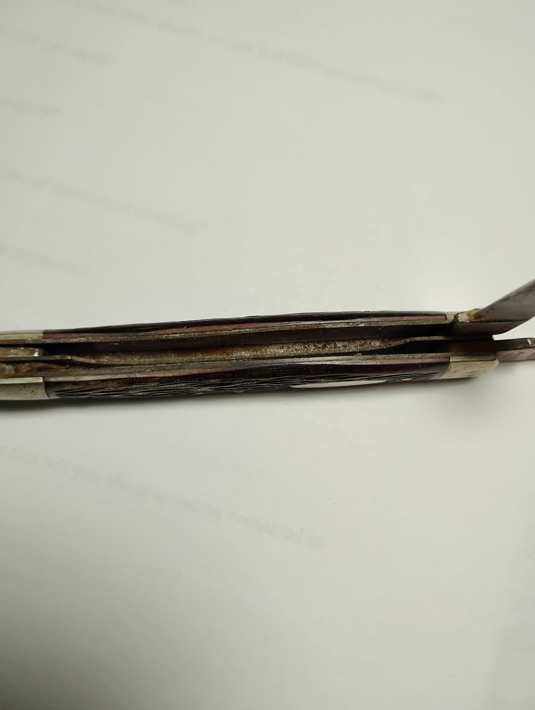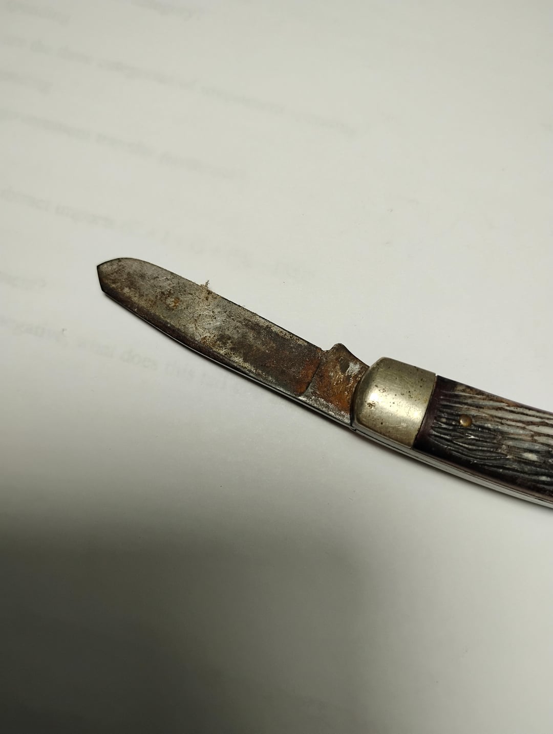 In KNIVES Advice on cleaning this vintage Ulster USA knife without taking it apart March 7, 2026 Advice on cleaning this vintage Ulster USA knife without taking it apartby Agreeable-Storage895 KnifeKnives Prev Post Just some saturday shortwave EDC March 7, 2026 Next Post Kizer Compadre March 7, 2026 Related Posts G-Carta & Damasteel March 7, 2026 This is my favorite pocket knife! March 7, 2026 While camping last year, my knife spent the night wedged into a piece of firewood, in the fire. Will this compromise the blade? Anything I should do to clean it? March 7, 2026Write A CommentYou must be logged in to post a comment.