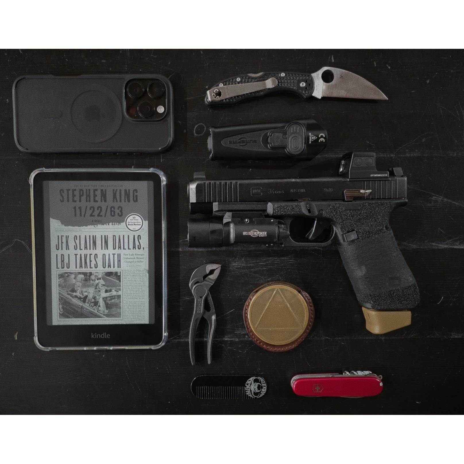 zoloftcowboy 3 weeks ago Glock 34 Gen 5 MOS •Holosun EPS •Surefire X300 Turbo •Glock performance trigger •Ameriglo suppressor height sights •Primatia slide release •HandleitGrips edge series Surefire Stiletto Spyderco Delica Wharncliffe Knipex cobra pliers Victorinox Compact Sobriety challenge coin iPhone 16 Pro Kindle Paperwhite 12gen